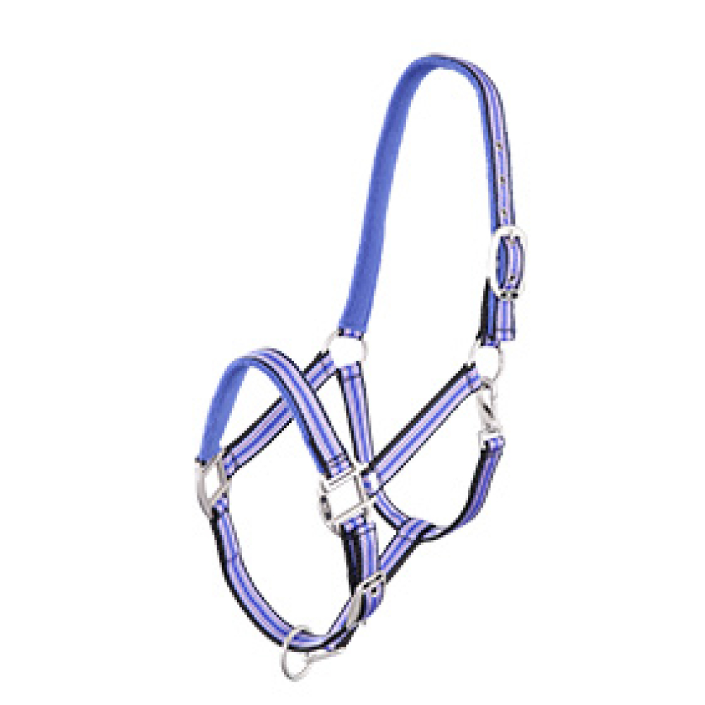 BR halster Passion Materiaal: nylon, kopstuk, neusriem en bakstukken zijn gevoerd met fleece Hardware: zink met chroom finish ; Vierkleurig halster ; Kopstuk en neusriem zijn verstelbaar