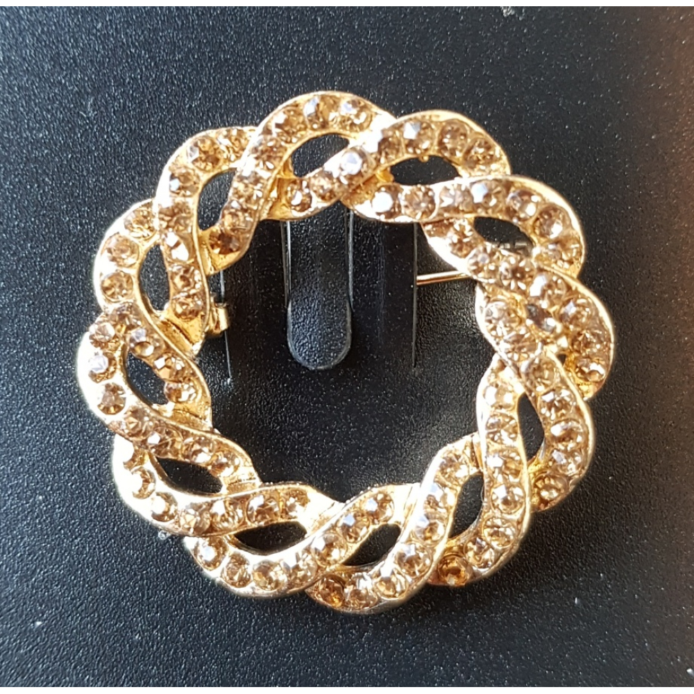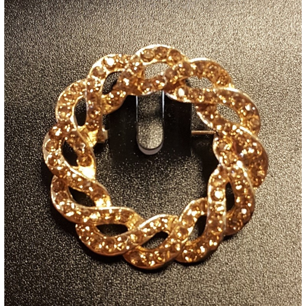 Ronde plastronspeld met strassteentjes Beschikbaar in een zilverkleurige variant en een goudkleurige variant