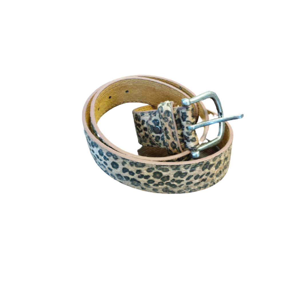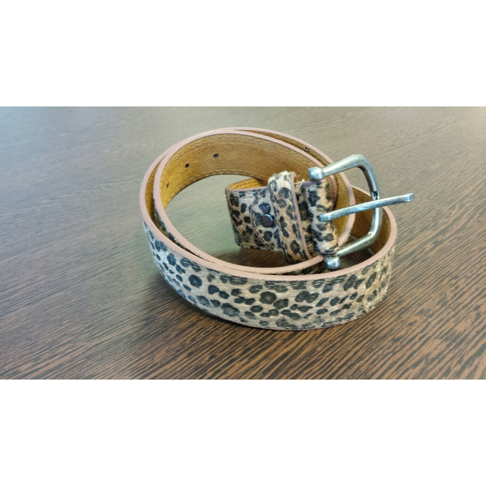 Opvallende, soepele ceintuur. Gemaakt van echt leder met PU. Bruine riem metluipaard print. Bruine (iets glimmend) met zwarte dunnen vacht structuur. * ongeveer 3,5 cm breed Enkel verkrijgbaar in 90cm