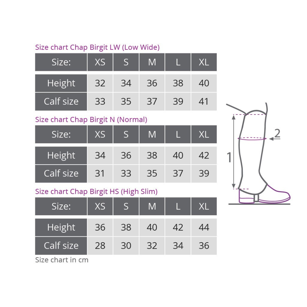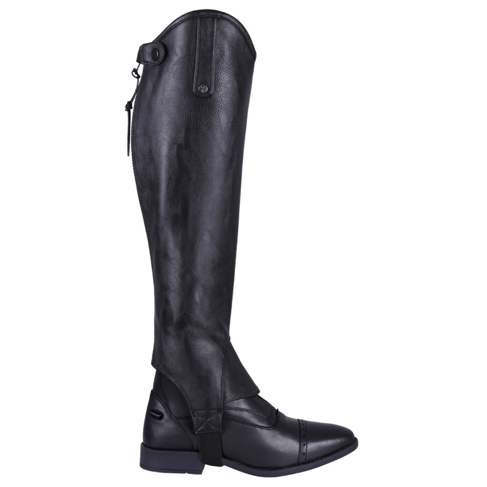 Deze chap heeft een stoere uitstraling door de grove structuur van het materiaal op de schacht en het vetertje aan de rits. De buitenkant is van elastisch imitatieleer, met rundleer aan de kant tegen het paard. De binenzijde van de chap is dus van echt rundleer. Materiaal buitenzijde: rundleer, polyurethaan Materiaal voering: polyester Chap met stoere uitstraling Moderne nauwsluitende pasvorm Model met middelhoge boog Model met wijdere, kortere kuitmaat Buitenzijde van soepel elastisch imitatieleer met grove structuur Zijde tegen het paard van rundleer Rits aan de achterkant, met boven een bandje met elastiek en drukknoop Gewaxt vetertje aan de rits Gevoerd met zachte stof Met elastiek voor om de voet Ook verkrijgbaar met normale kuitmaat (neem hiervoor contact op met de winkel) Ook verkrijgbaar met hoge, smalle kuitmaat (neem hiervoor contact op met de winkel)