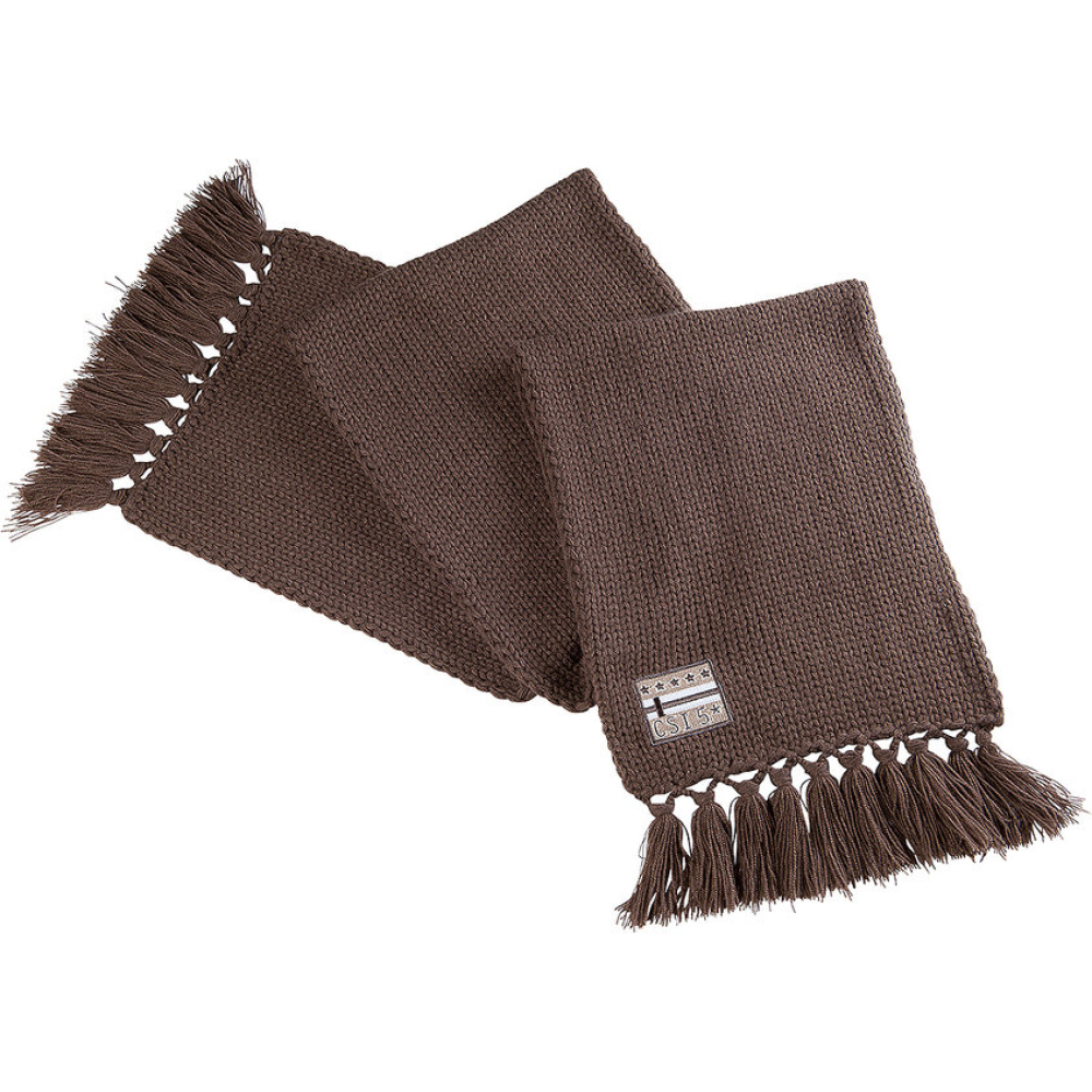 Modieuze, met een grote steek gebreide acryl sjaal met franjes aan de onderkant en een badge met de CSI 5* vlag.. Machine wasbaar op 30°C.