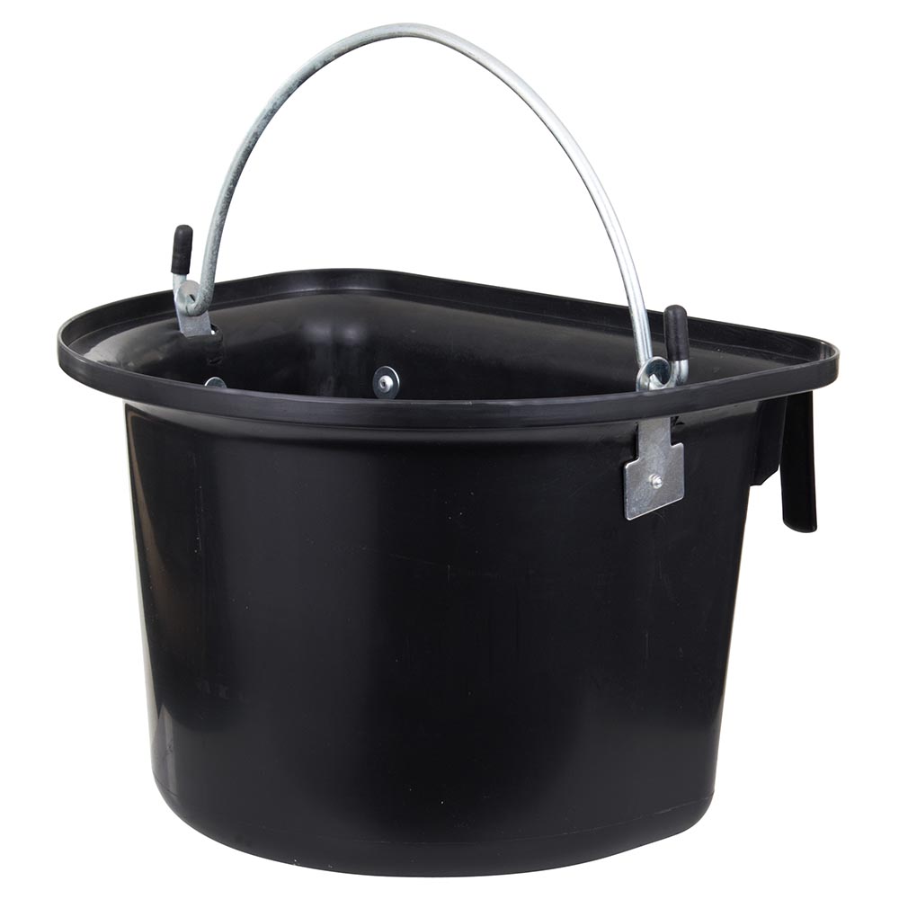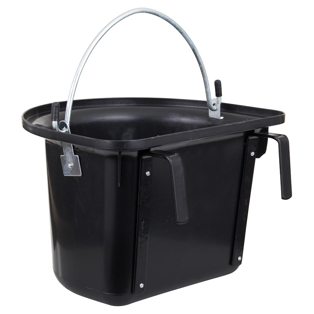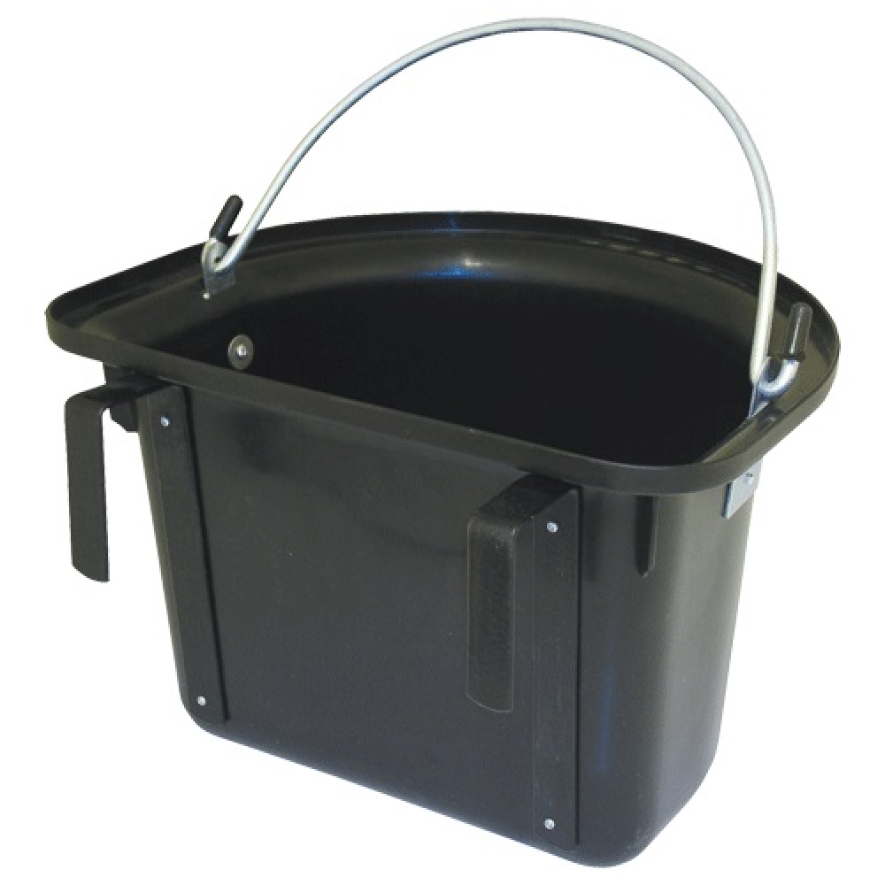 Halfronde, plastic voerbak met geplastificeerde beugels. Met draahbeugel.