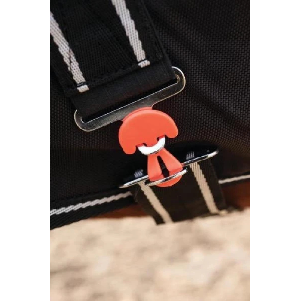 Safe-Gum veiligheidsrubber voor dekensingel Deze veiligheidsrubbers breken zodra de druk hoger dan 50 kg wordt. Dit voorkomt dat het paard verder verstrikt raakt in de singels of in paniek raakt. Ook worden verwondingen en kapotte dekens voorkomen! De rubbers zijn vorstbestendig tot -30°C, UV- en ammoniak bestendig en tevens eenvoudig te vervangen. De Safe-Gum veiligheisrubbers voor dekensingels zijn geschikt voor alle gangbare dekens met T-sluitingen/ mannetje-vrouwtje sluitingen. Per paar (2 stuks).