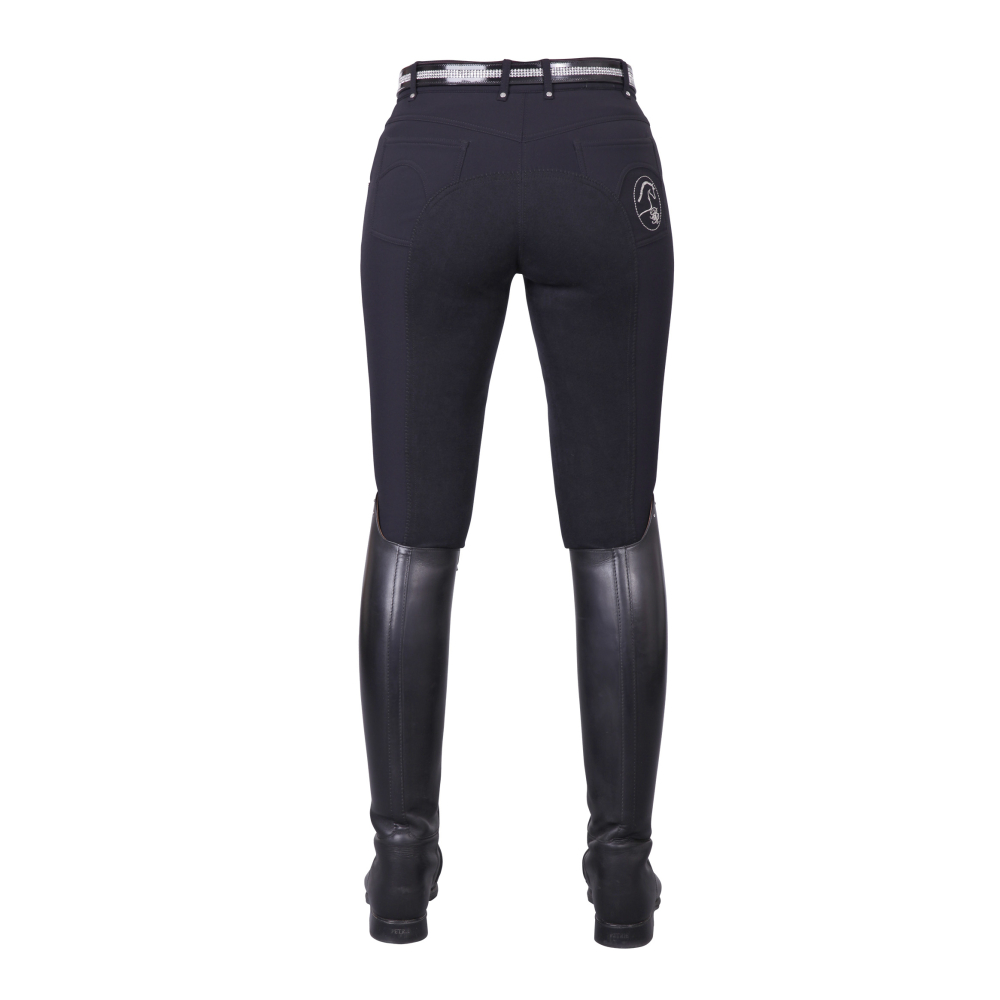 De BR damesrijbroek;Scarroy is een modieuze damesrijbroek van softshel met kunstlederen zitvlak. De softshell stof is warmte isoleren, vuil en waterafstotend Aan de ondersijde heeft deze rijbroek stretch been omsluiting en geen klittenband. Dit zorgt voor meer comfort, voorkomt huidirritaties (van het klitteband) en zit comfortabel in de rijlaars Materiaal: 84% polyamide, 16% polyurethaan soft shell ; Twee steekzakken met klinknagels aan de voorkant ; Twee achterzakken ; Borduursel op achterzak ; Riemlussen met klinknagels ; Elastische beensluiting ; Microfiber zitvlak (MF) Wij raden u aan om deze rijbroek 1 maat groter te kopen dan dat u gewend bent