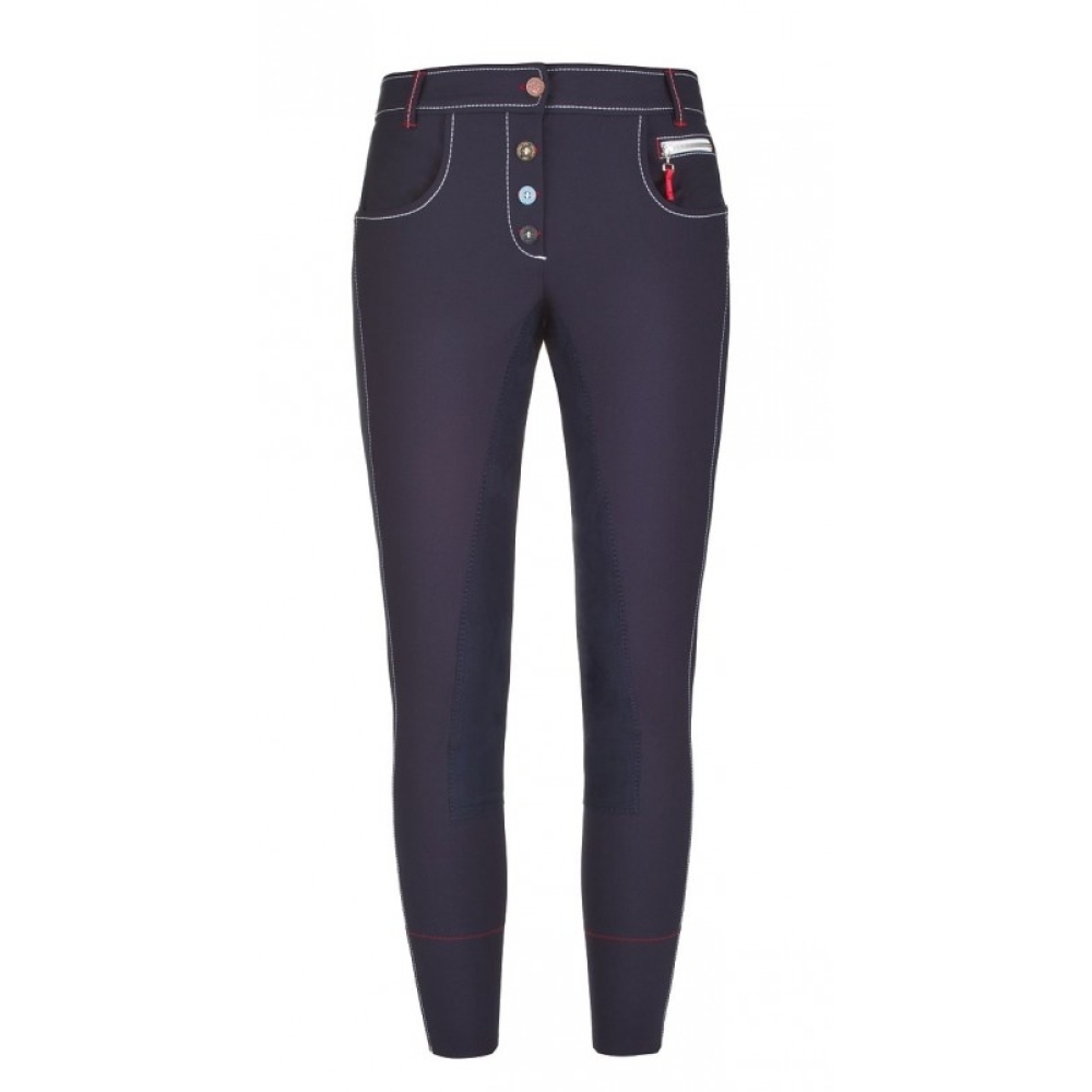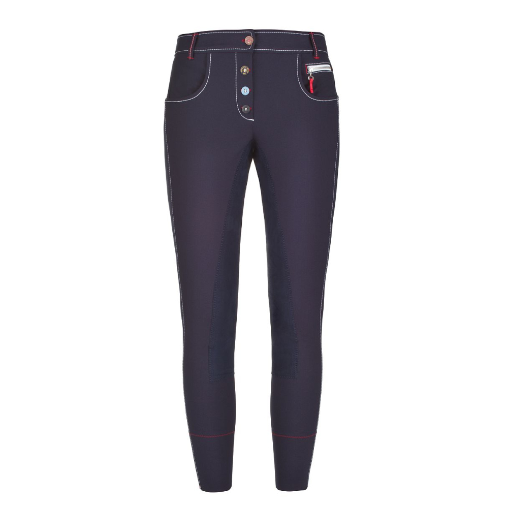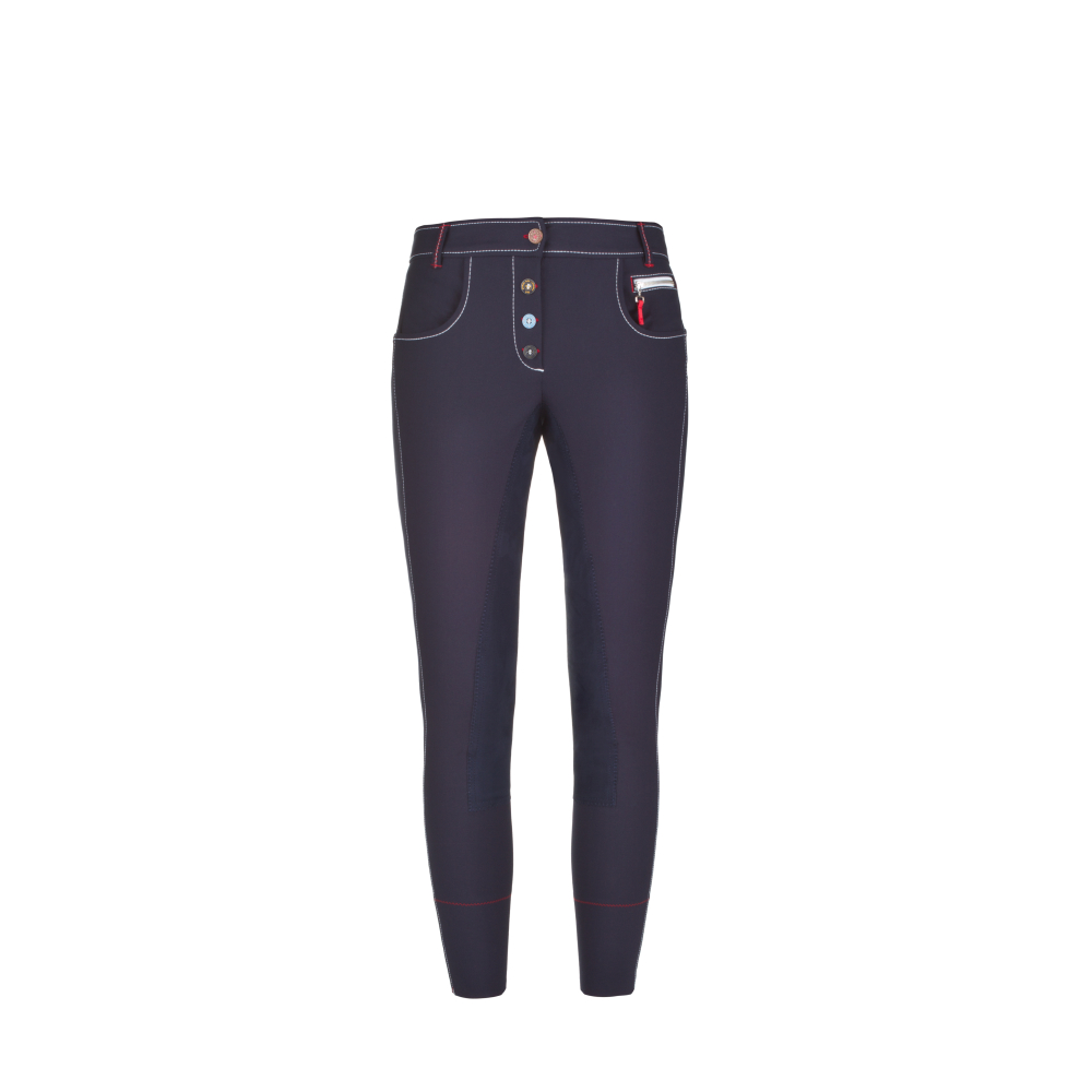 Die Cavallo Cadine ist eine trendige Reithose mit 3/4-Cavasoft®-Besatz. Die verschiedenen Akzente, wie farbige Knöpfe auf der Vorderseite, Kontrastnähte und Reißverschlüsse, machen diese Reithose zu einem echten Hingucker. Die Reithose hat ein gesticktes Abzeichen auf der rechten Gesäßtasche. Die Cadine hat einen elastischen Beinabschluss. Diese Reithose ist in folgenden Längengrößen erhältlich: Größe 36 = Länge 72 Größe 38 = Länge 76 Größe 40 = Länge 80 Größe 42 = Länge 84 Größe 44 = Länge 88