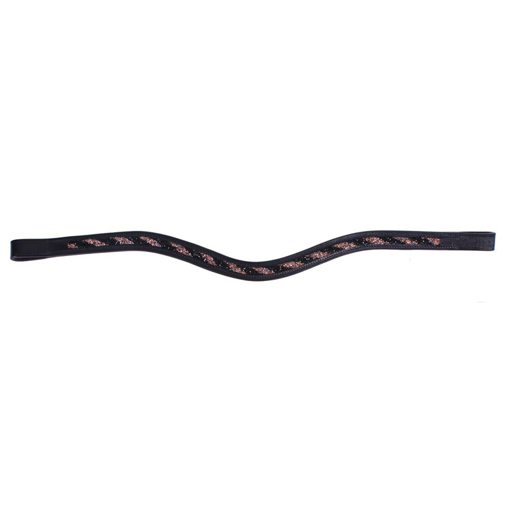 Overige kenmerken: Zwart leren frontriem Afgewerkt met strass stenen inzet met twee kleuren in diagonaal gedraaid patroon Chique wave vorm 2,3 cm breed