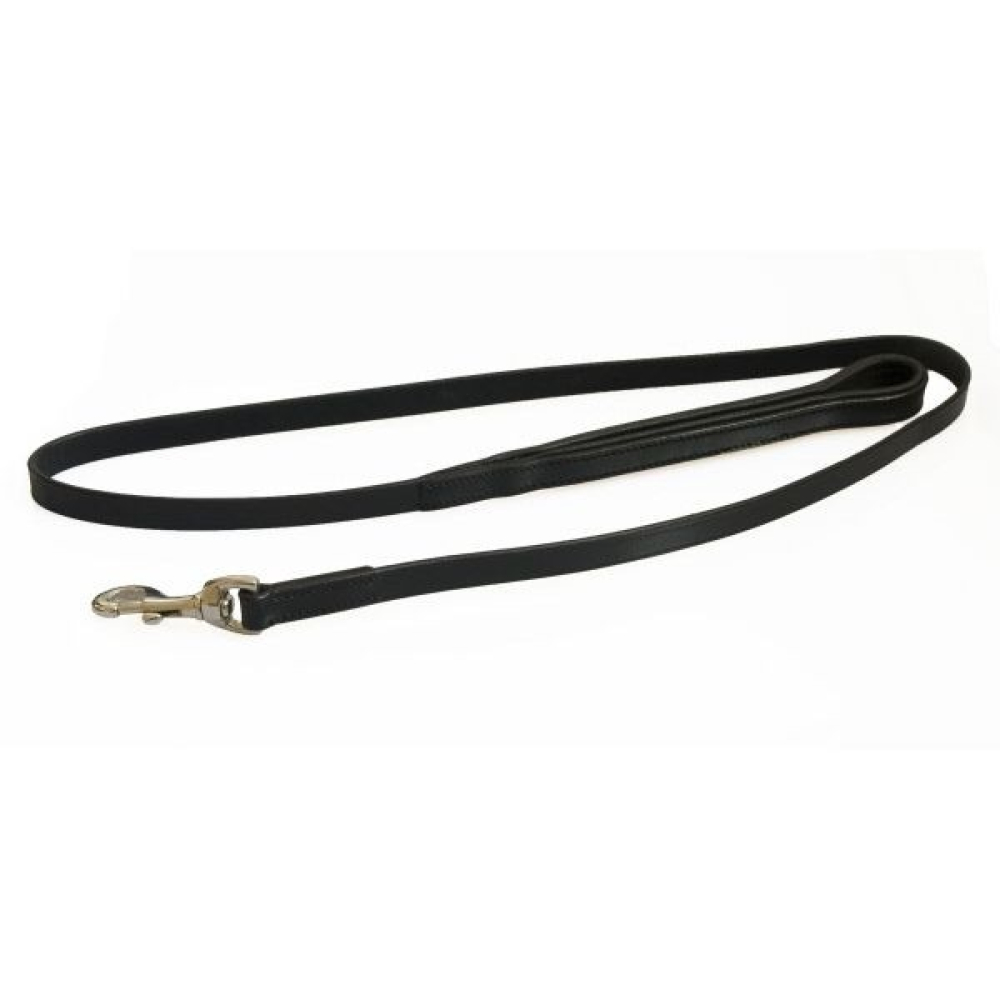 Lederen hondenlijn met gevoerd handvat en nikkelen musketon.
