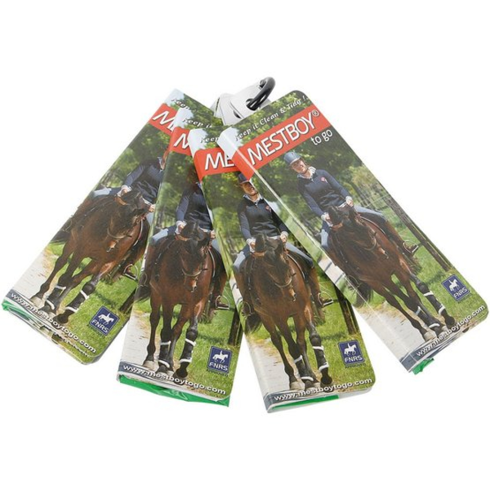 <span>Mestboy to Go, de eenvoudige en slimme oplossing om paardemest onderweg op te ruimen. Uniek design en vormgeving maken de Mestboy to Go eenvoudig in gebruik. Voldoe aan de verplichting om de mest van uw paard op te ruimen</span><span>1 set bestaat uit 4 Mestboy's to go met karabijnhaak.</span>