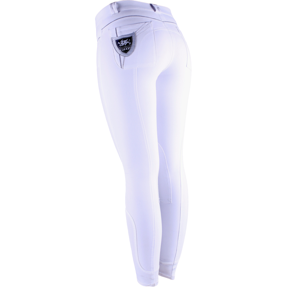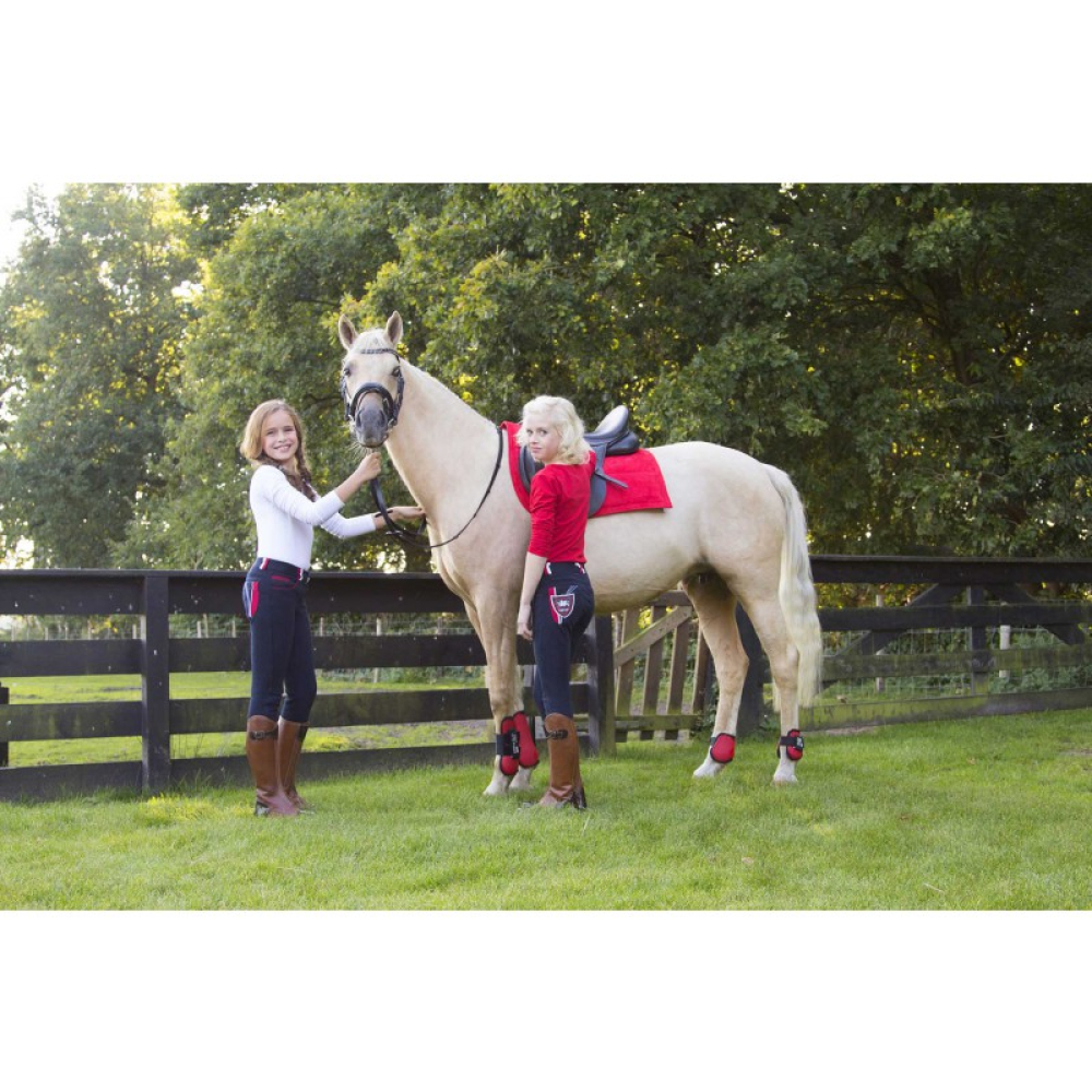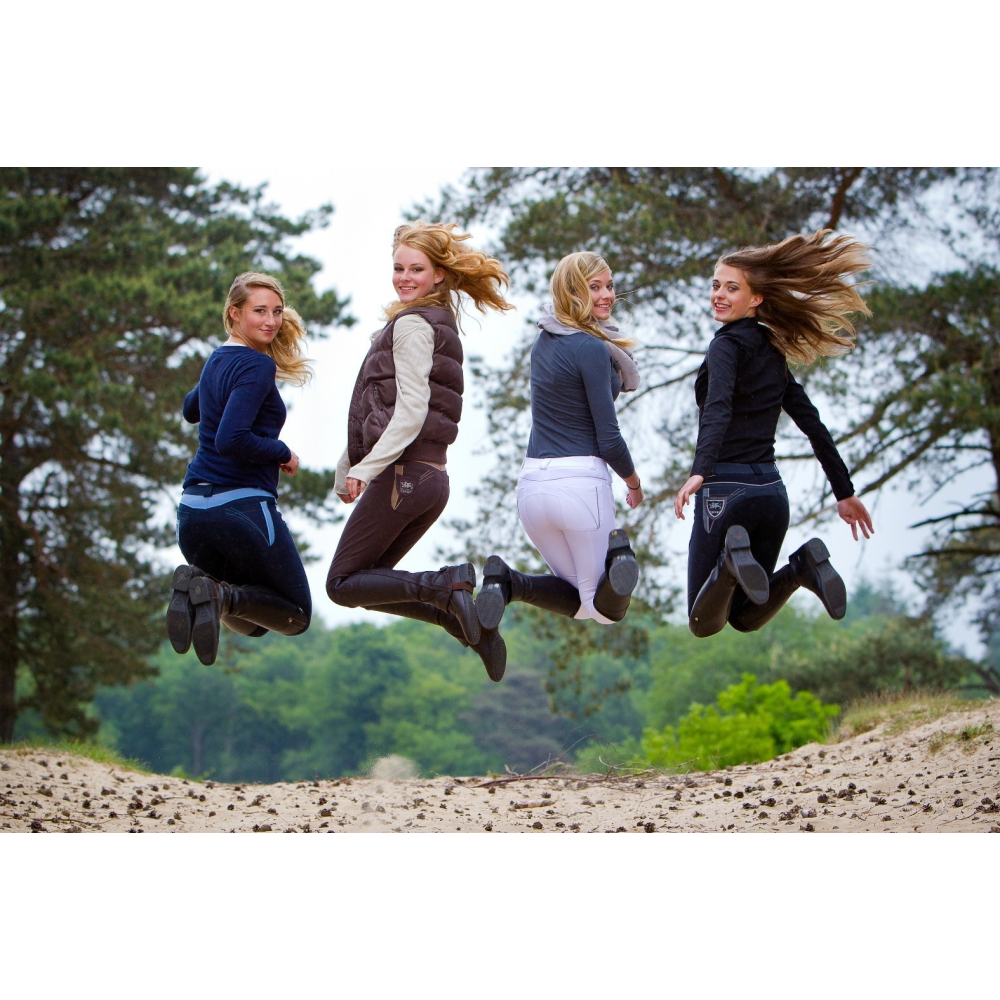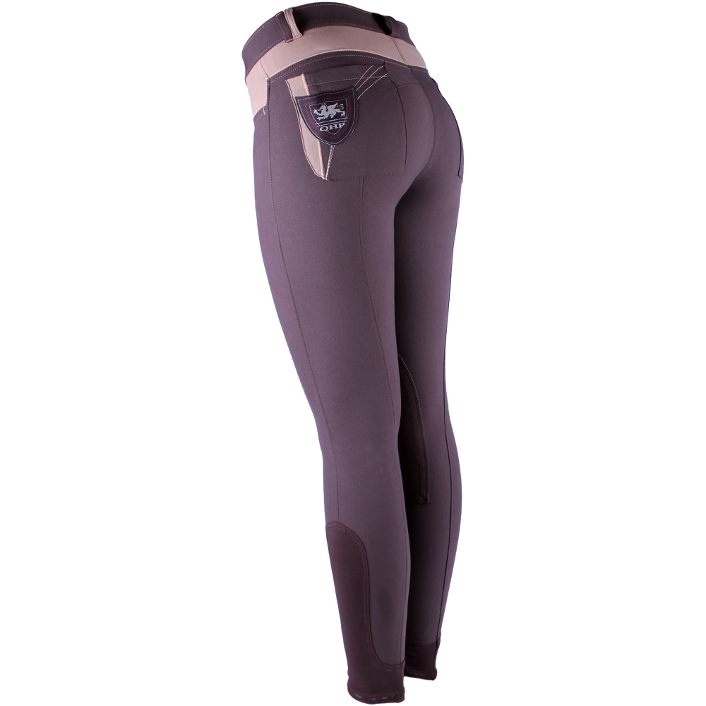 QHP Claire is een laag model dames rijbroek. De rijbroek is afgewerkt met een contrasterende bies en contrasterende kleurvlakken. Deze 2 tone rijbroek heeft aan de voorkant 2 steekzakken, waarbij in de rechter steekzak een klein zakje zit. Aan de achterzijde heeft deze rijbroek 2 steekzakken wederom in contrasterende kleuren, waarbij er een badge van QHP is gestikt op de linker steekzak. De broek heeft een stoffen inzet. De Claire heeft onderaan de broekspijp een elastische beenafsluiting Stofsamenstelling: 58% Katoen, 34% Nylon, 8% SpandexVoorzien van stoffen kniestukkenAchter 2 steekzakken met een gekleurde baan en witte detailsLinksachter een opvallend QHP schild met een griffoen en witte detailsVoor 2 steekzakken en een coin pocket met een gekleurde biesDe rood/wit/blauwe variant heeft opvallende riemlussenVoorzien van lycra flexlegs
