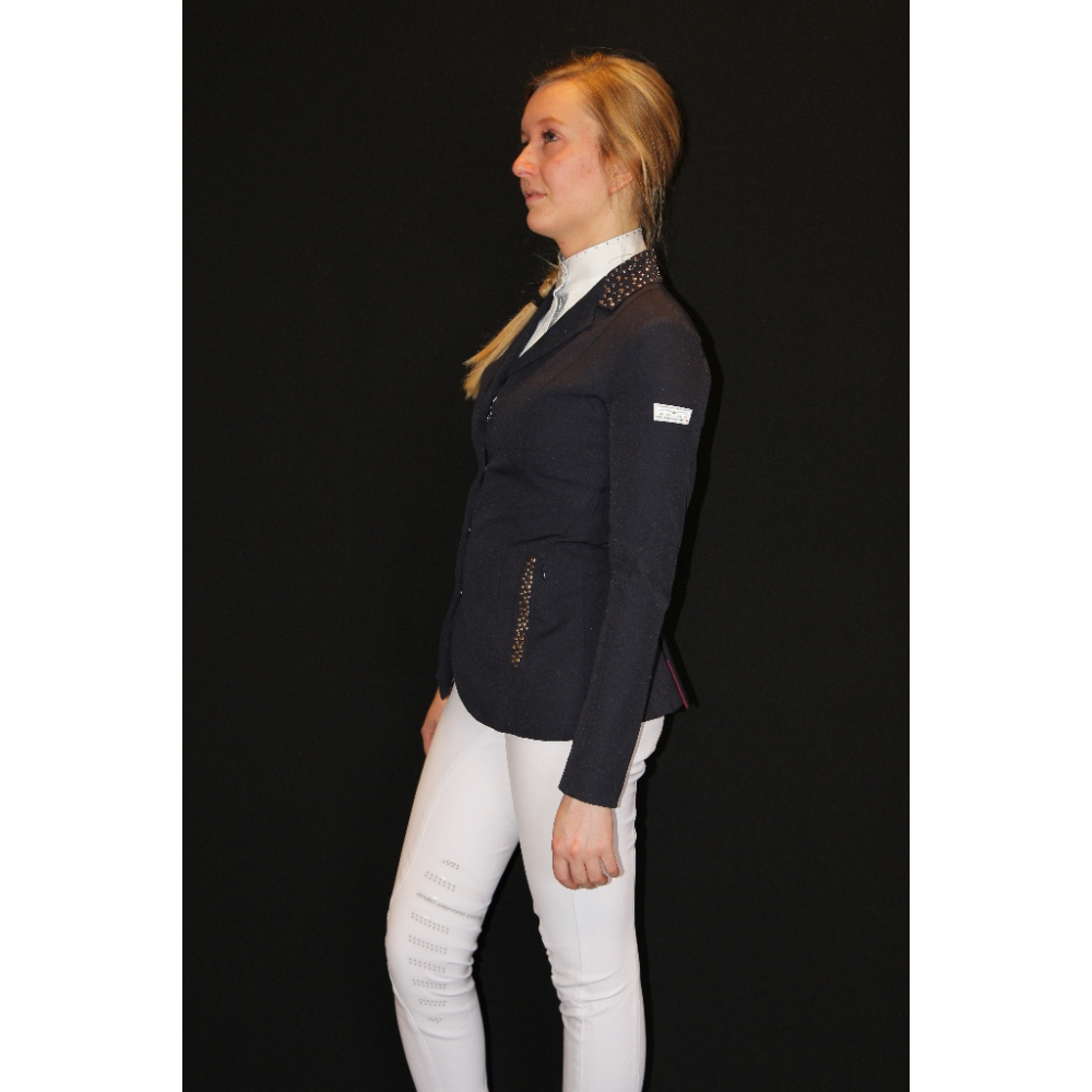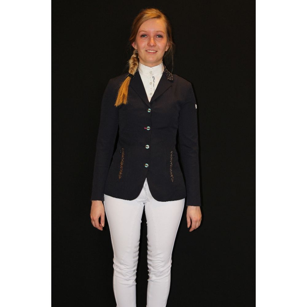 Animo Lost is een opvallende, chique rijjas. Aan de voorzijde heeft deze rijjas 2 ritszakjes welke zijn afgezet met metallstuds in verschillende maten. Ook op de kraag van het jasje komen deze metallstuds terug. Aan het uiteinde van de mouwen zitten ritsjes zodat de rijjas gemakkelijk aan en uit getrokken kan worden. De Animo Lost heeft aan de voorzijde eerst een ritssluiting, zodat de jas goed afgesloten kan worden en daarna een knoopsluiting. Op de linker bovenarm is de badge van Animo geborduurd. Aan de achterzijde heeft deze rijjas 2 splitten voor extra draag comfort. De voering van de jas is gedeeltelijk gebloemd Wasbaar op 30 graden Uitsluitend verkrijgbaar in het donkerblauw Let op! De getoonde maten zijn Italiaanse maten u dient dit wedstrijdjasje ongeveer 2 maten groter te nemen dan uw normale confectie maat In het label staat I-36 / D-30 I-38 / D-32 I-40 / D-34 I-42 / D-36 I-44 / D-38 I-46 / D-40
