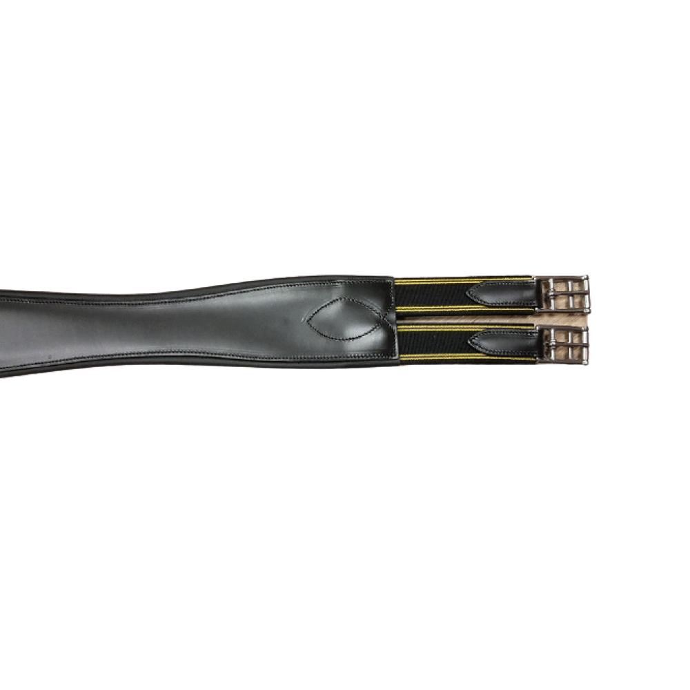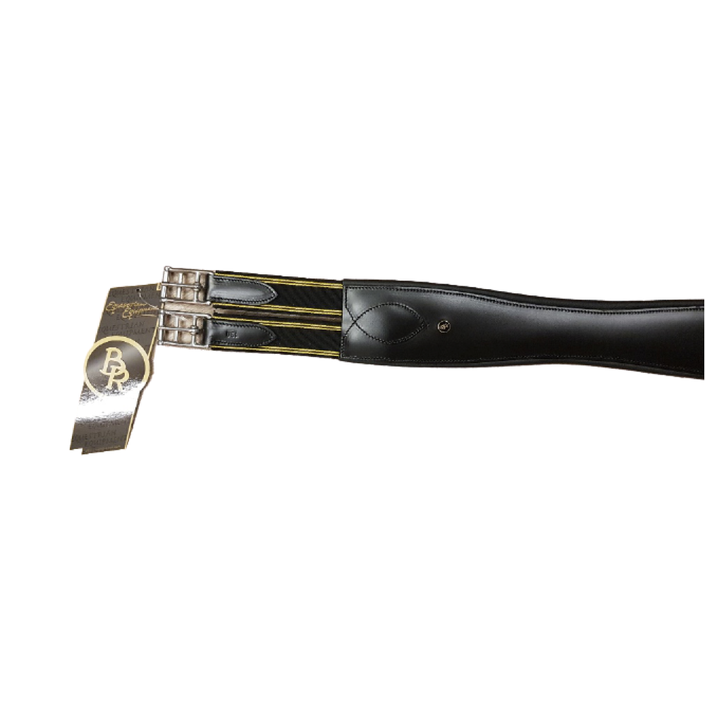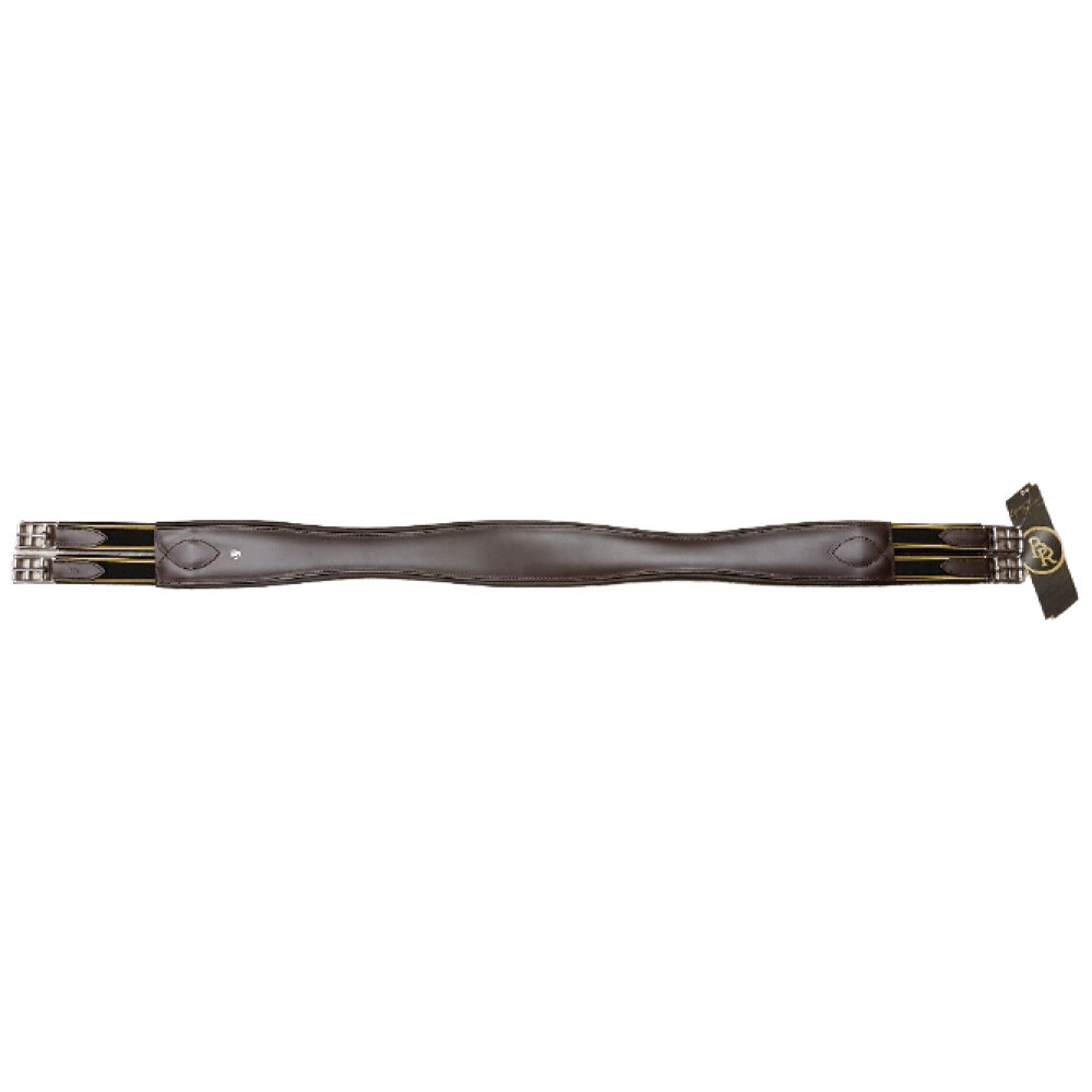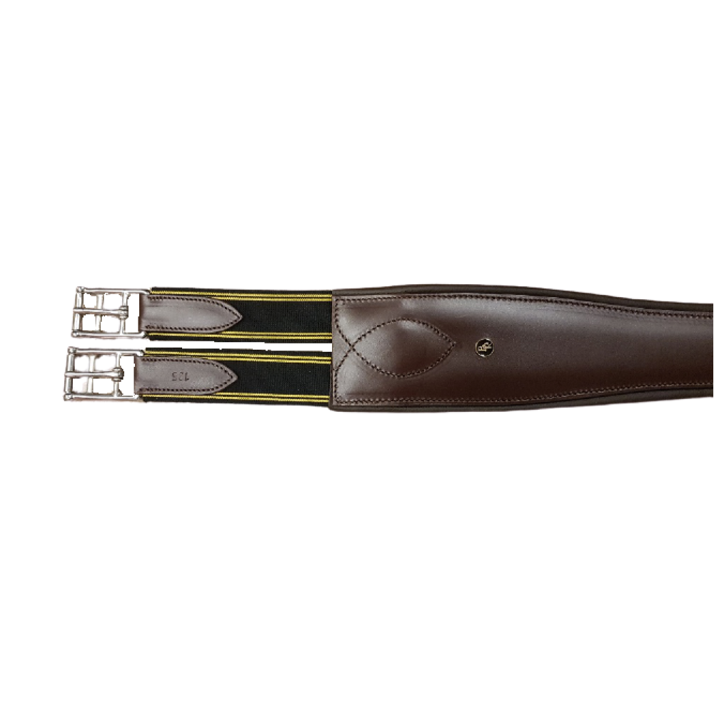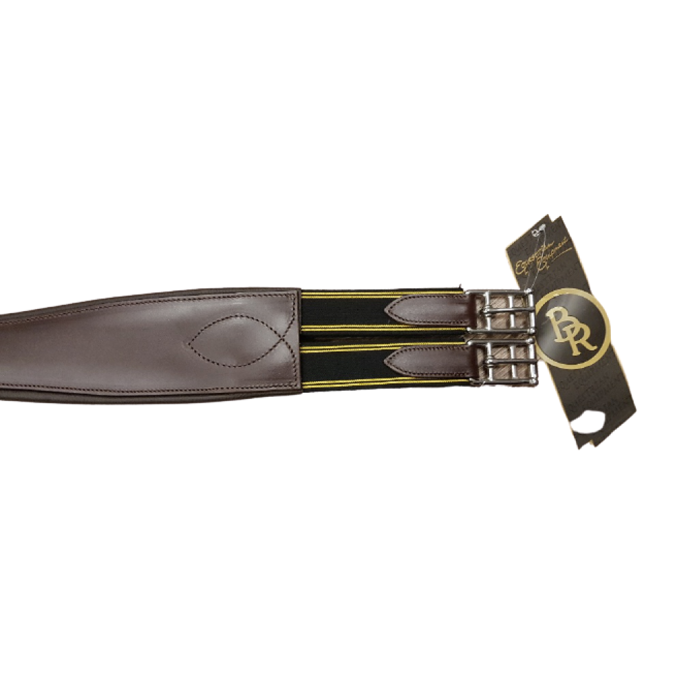 BR singel Aanatomisch gevormde, gevoerde, lederen singel met elastiek aan één zijde en roestvrijstalen rolgespen.