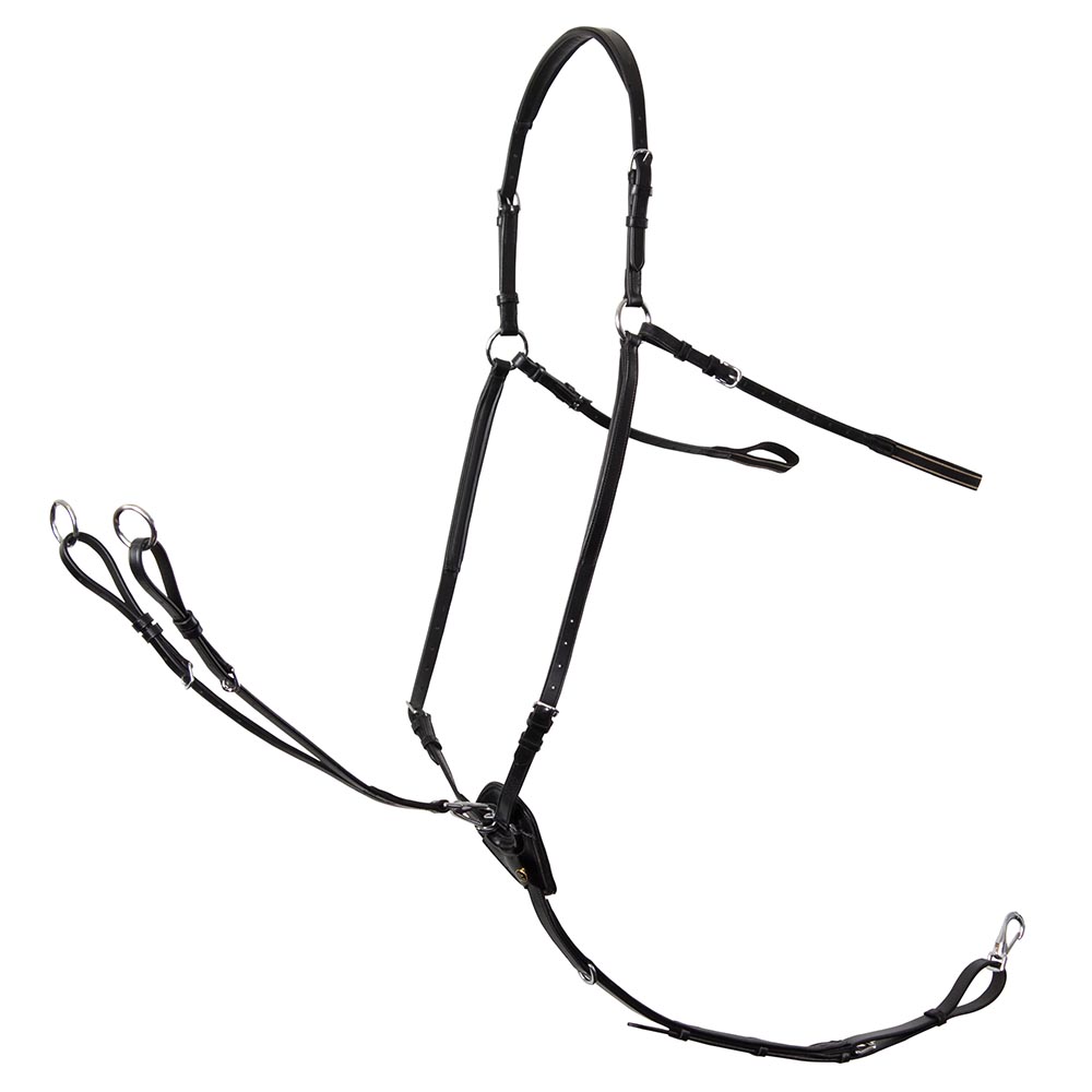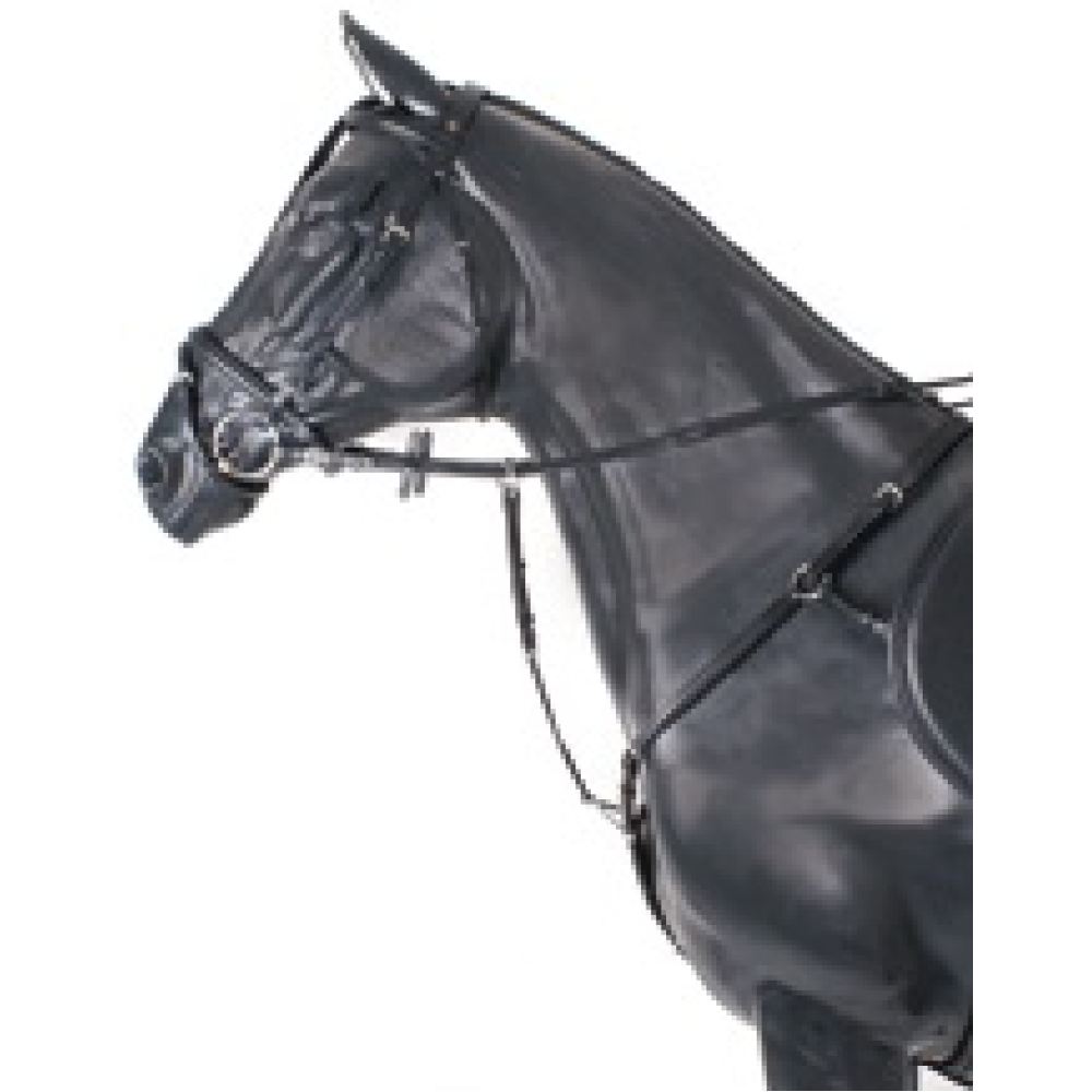 BR voortuig Stratford: Luxe lederen voortuig met vele verstelmogelijkheden. Het voortuig kan eenvoudig aan de singelstoten van het zadel bevestigd worden met een lus van elastiek. Voor de bevestiging aan de onderzijde van de singel zijn er twee opties: met een musketon of met een lederen lus met een gespsluiting. Het borsttuig is uitgevoerd in het beste volnerf Europese leder, dit leder is sterk, soepel, voelt zacht aan en is duurzaam. De meeste delen zijn zacht onderlegd en het geheel is mooi afwerkt en voorzien van hoge kwaliteit roestvrije messing fournituren. Het voortuig wordt geleverd met een verstelbare, lederen martingaalvork voorzien van een musketon, zodat deze eenvoudig eraf gehaald of erop gezet kan worden. Het zwarte voortuig heeft glanzende, zilverkleurige fournituren. Dit voortuig heeft elatische banden. Dit voortuig kan in de maat full tevens in de kleur Tobacco worden besteld. Het tobacco voortuig heeft matte, messingkleurige fournituren. Neem voor deze variant contact op met de winkel.