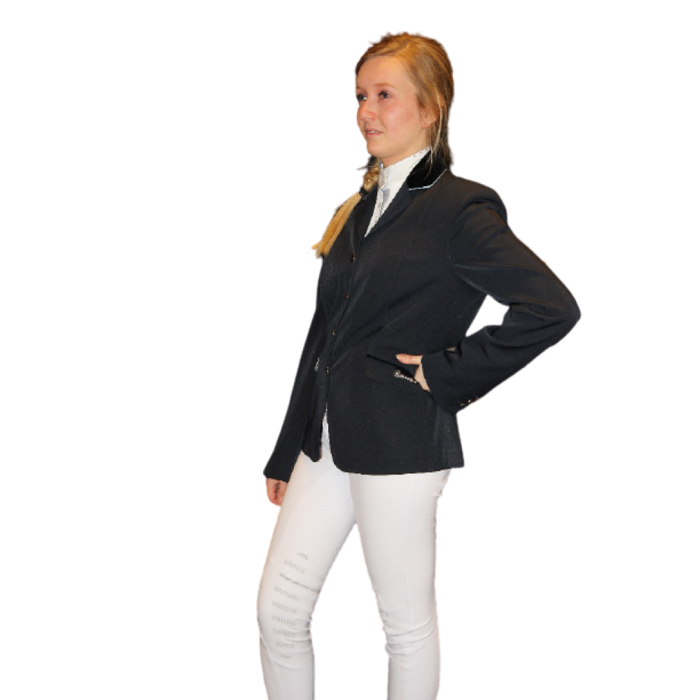 De Galathea Sport is een wedstrijdjas van Cavallo. Deze modieuze, kort model wedstrijd jas is getailleerd en heeft 2 zakjes aan de voorzijden, waarvan de linker functioneel is. Op het linker zakje is het logo van Cavallo subtiel geborduurd. Deze Galathea Sport heeft een fluwelen kraag welk met grijs koordje is afgezet. Kleur: Blauw Maat: 38 U kunt deze jas vergelijken met andere Galathea Sport modellen. U kunt deze jas namelijk zelf samenstellen en bestellen. U kunt hetvolgende zelf samenstellen op bestelling: <ul> <li>Wel of geen fluwelen graag</li> <li>koord of glitter bies langs kraag (Bij koord kunt u verschillende kleuren kiezen)</li> <li>Soort stof</li> <li>Knopen</li> </ul> De op de website getoonde modellen zijn direct leverbaar, zelf samenstellen enkel op bestelling. Neem voor meer informatie contact op met de winkel.