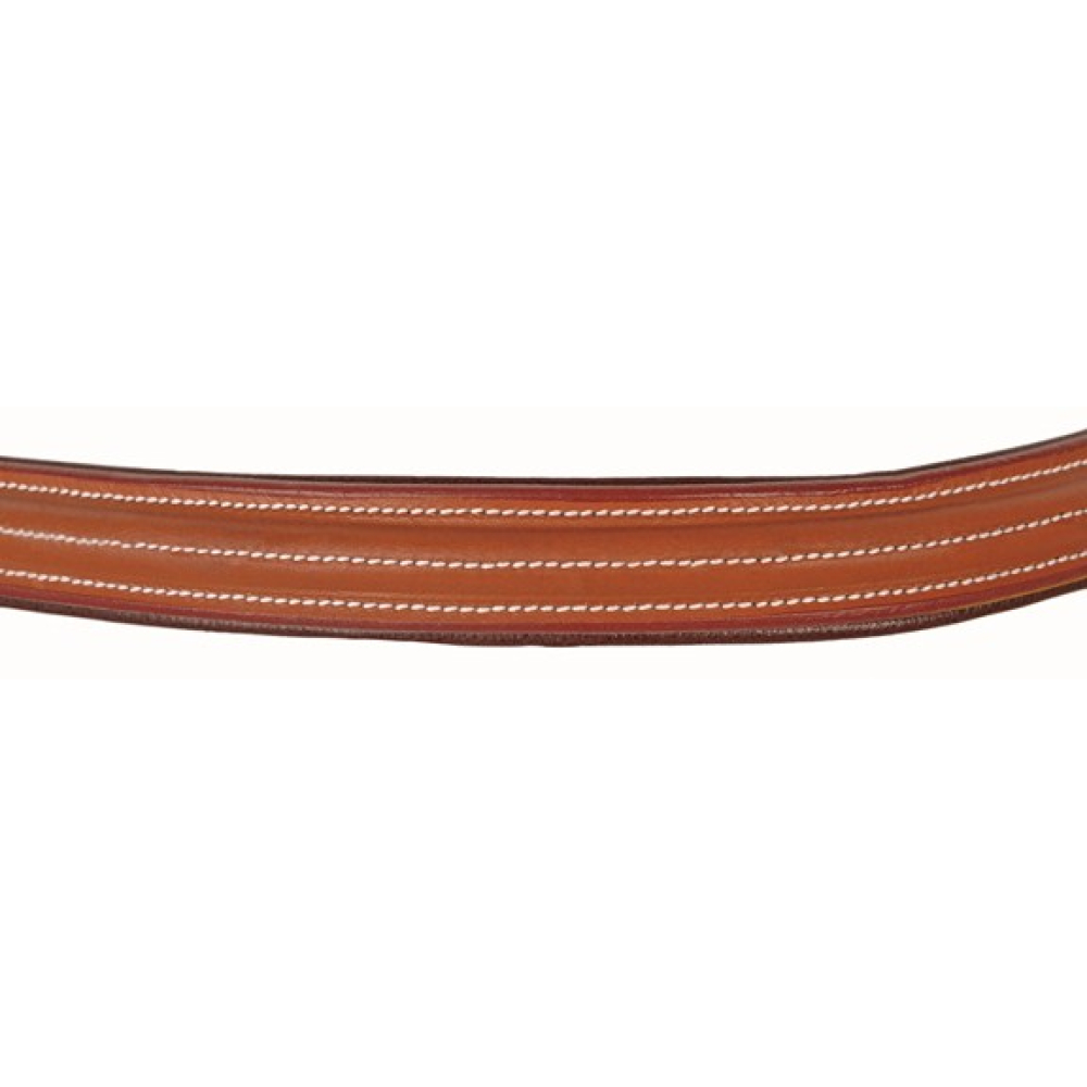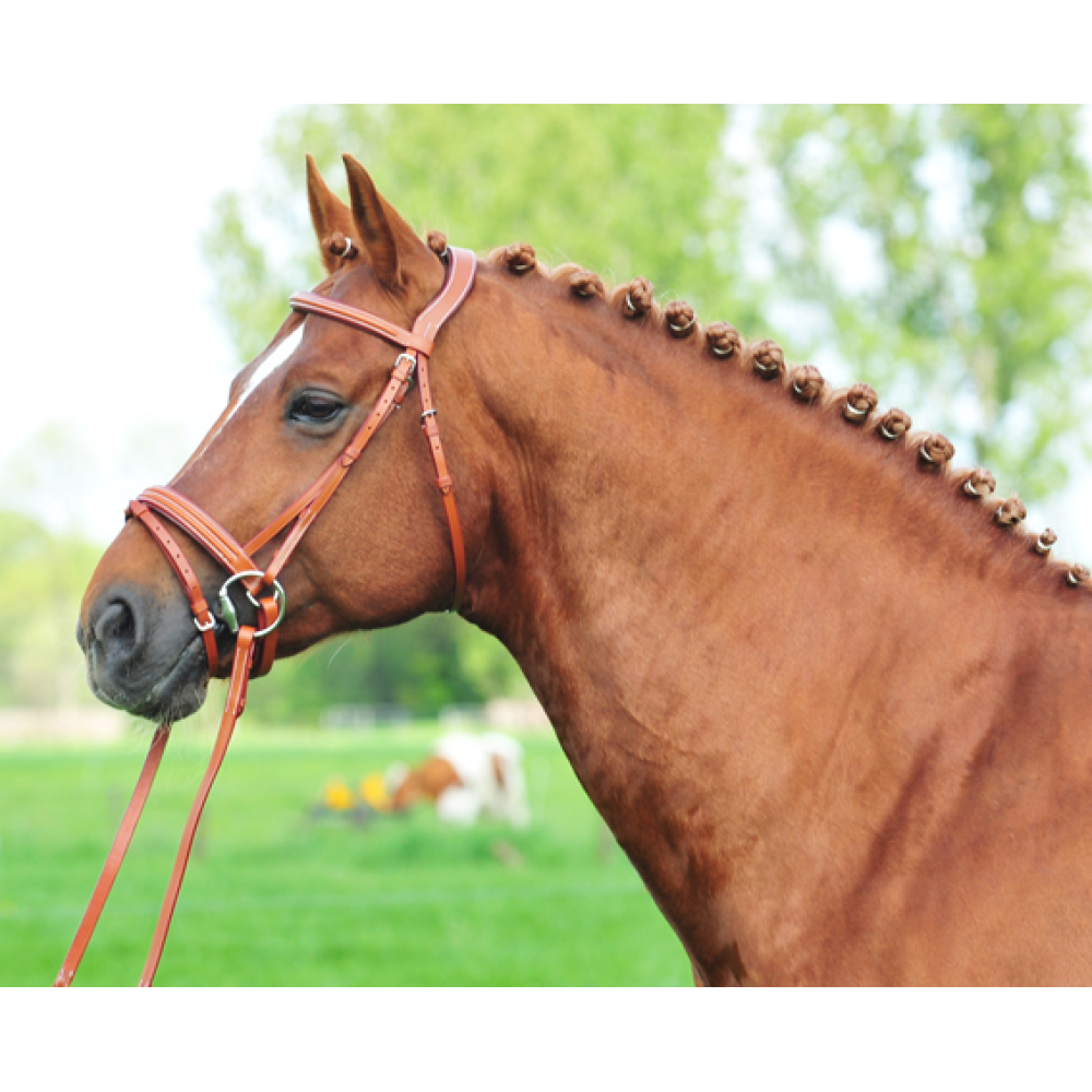 productomschrijving: - witte sierstiksel op neus- en frontriem - rubberen antislipteugels - van stevige gespen uit roestvrij staal - aansnoerneusriem - neusriem en kopstuk zacht onderlegd - kwaliteitsleer - zonder bit