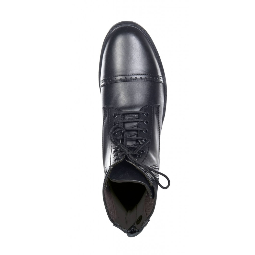 - rundleer - rits aan de achterzijde - slanke voetvorm - rubber profielzool met hak - elastische inzet aan de zijkanten - vetersluiting en elastische inzet - waterdichte zool - voering van echt leer