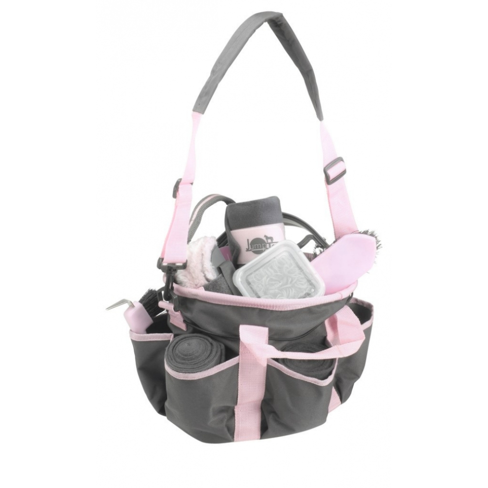 Deze nylon tas is voorzien van 6 buiten vakjes, niet alleen om uw poetsspulletjes in op te bergen(borstels en andere accessoires), maar ook uw verzorgingsproducten en bandages. Een rond elastiekje houdt de voorwerpen op zijn plaats. Vier plastic voetjes voor een stabile plaatsing op de grond en voorkomt zo vlekken. Heel handig en overal meet naar toe te nemen dankzij de handvatten en zijn verstelbare schouderriem, afneembaar doormiddel van musketons. Let op! Exclusief Borstels en accessoires