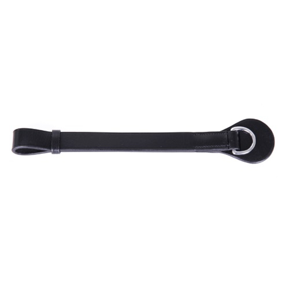 Lederen singellus met roestvrijstalen D-ring en beschermflap om hulpteugels aan te bevestigen. De singellus kan eenvoudig om de singel geschoven worden. Met het verschuifbare passantje kan de lus op maat gemaakt worden.