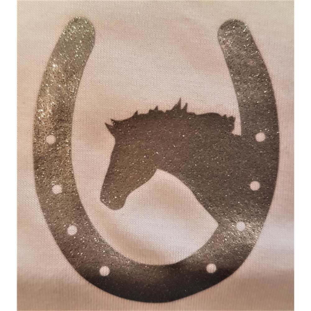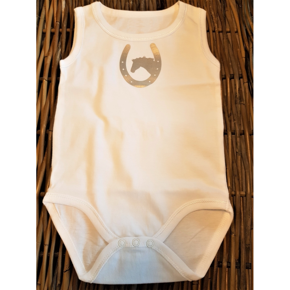 Lief rompertje met een paard in een hoefijzer;erop Machine wasbaar op 30graden. Verkrijgbaar in de maten: * 50/56 *62/68 *74/80 *86/92 *98/104