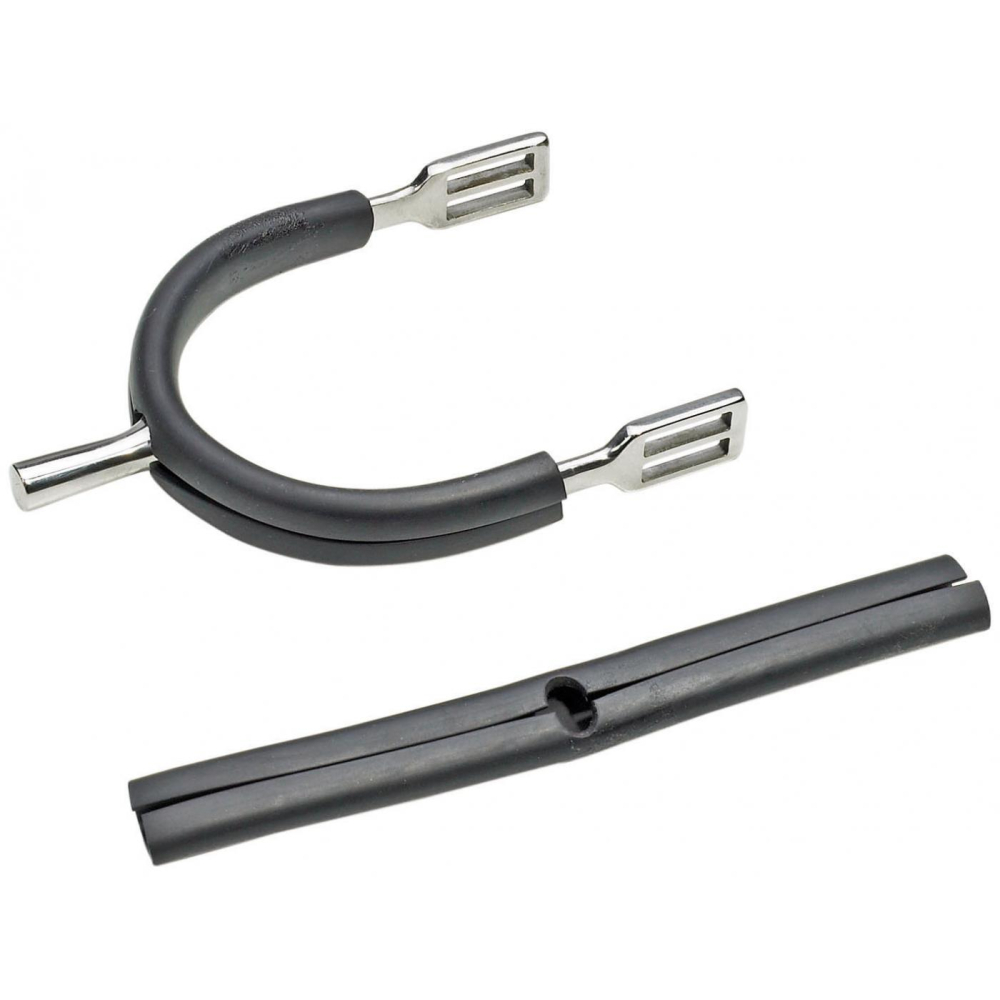Rubberen spoorbeschermer welke ook bescherming bied aan de rits van de laars. * van rubber, passend voor alle gangbare sporen * bescherming voor lederen laarzen en enkellaarzen * voor een betere grip van de sporen * bekledend effect, verhinderen drukplaatsen