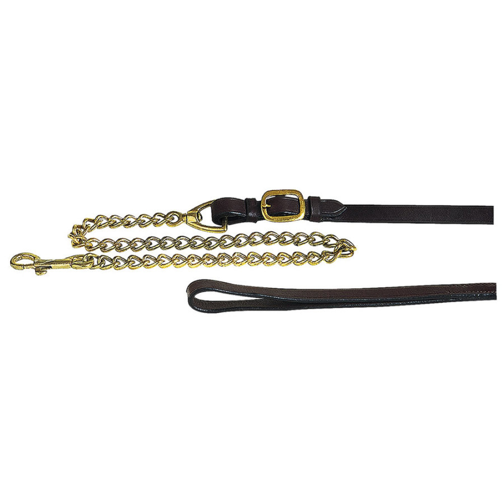 Buffellederen riem met messing ketting en gespwerk