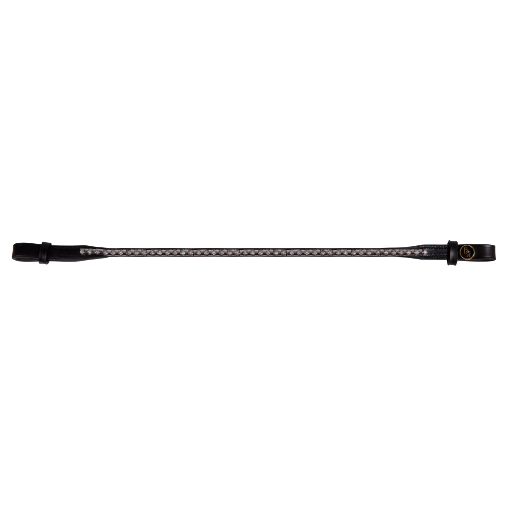 BR Frontdeel Glasses Crystals SC: Chique gebogen frontdeel met glazen imitatie diamanten en stalen studs Dit frontdeel heeft een Spilt Crown (SC), hierdoor is dit hoofdstel geschikt voor voor hoofdstellen met een gedeeld kopstuk. Dit frondeel heeft wijdere lusjes en twee leren passanten om de riempjes te scheiden. (dit is niet zichtbaar op de foto)