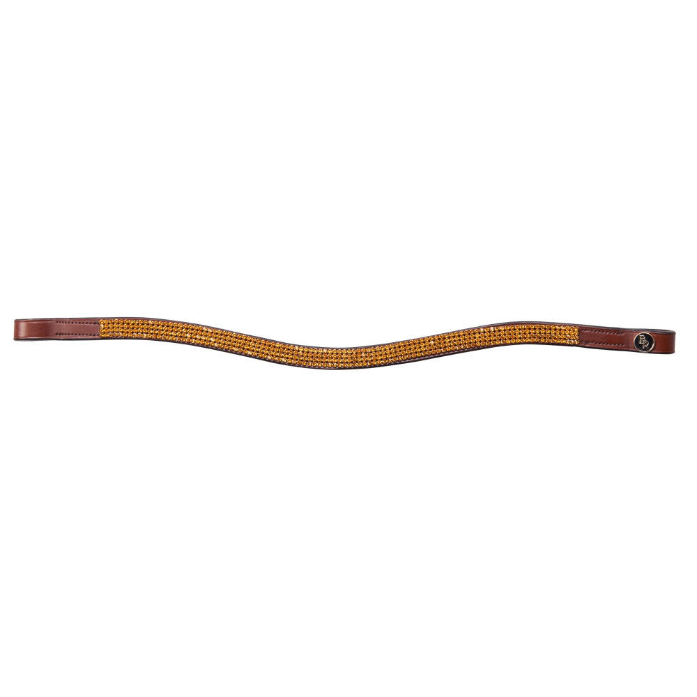 BR frondeel 4Row Swarovski: Deze zeer chique BR frontriem is gebogen rn ingelegd met 4 rijen goudkleurige SWAROVSKI ELEMENTS. Dit frontdeel is onderlegd met zacht leer.