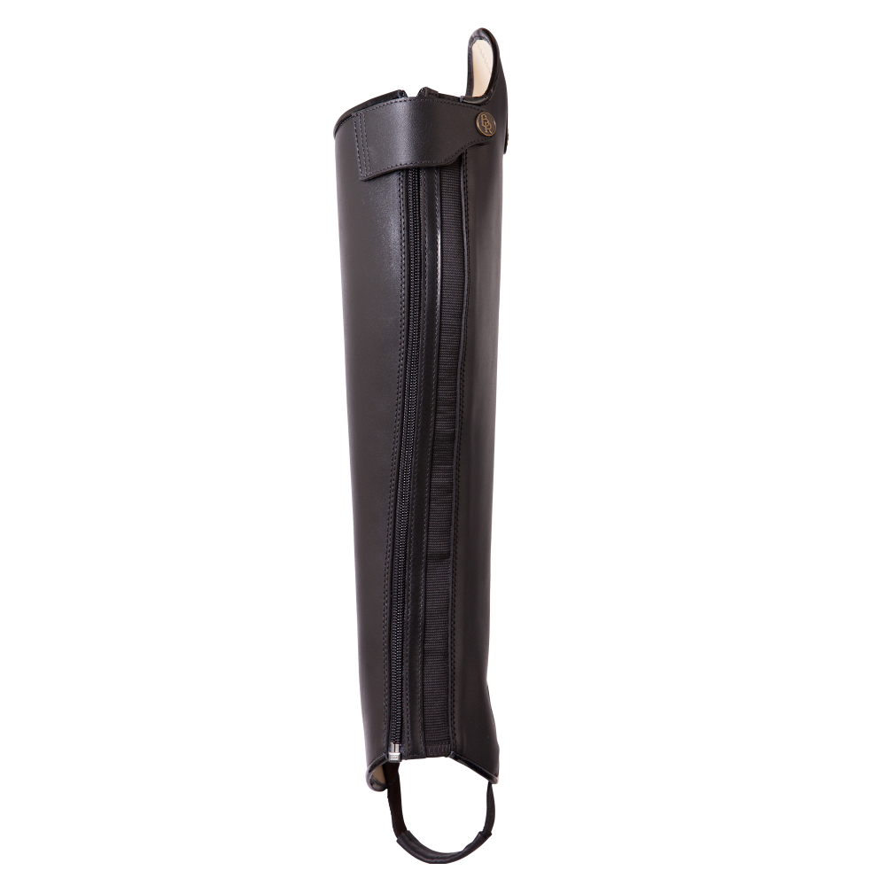 <span>Luxe gaiters van glad kalfsleder met een voering van kalfsleder. Door de elastische inzet langs de YKK ritssluiting wordt een perfecte pasvorm verkregen. De ritssluiting sluit van beneden naar boven. Aan de bovenkant heeft de ritssluiting een ritsbeschermer met drukknoopsluiting. De gaiters zijn voorzien van een 6,5 cm hoge dressuurboog aan de buitenzijde van de knie. De dressuurboog en de wreef zijn afgewerkt met een stijlvolle bies van lakleder. Het elastische voetenbandje is verstevigd met leder. De BR gaiters passen perfect bij de BR jodhpurcollectie en om die reden zijn ze een comfortabel en stijlvol alternatief voor rijlaarzen.</span> <span></span> <span>Maat: L Regular</span> Bent u geinteresseerd in een andere maat, neem dan contact op met de winkel. Wij helpen u graag verder!