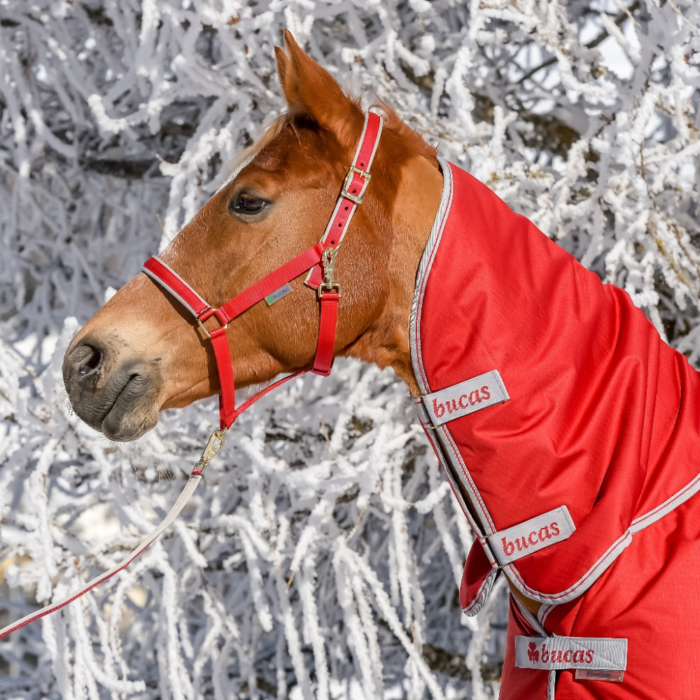 Zacht, gevoerd halster met optimale pasvorm. Ring van de sluiting is iets gebogen zodat deze van het hoofd af staat om irritaties te voorkomen