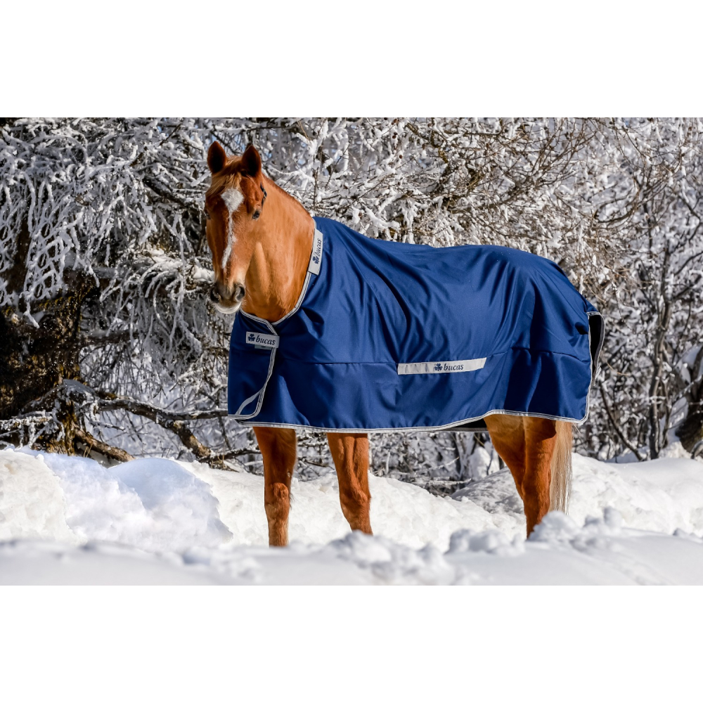 BUCAS Select Turnout Rug + 150G Select Quilt (Onderdeken) Stay-Dry Navy Flexibele 0grams regendeken, 100% waterdicht en gemaakt van 1200D rip-stop polyester, van Bucas die u in enkele seconden veranderd in een 150grams outdoordeken. Of wellicht in een 150grams staldeken, of eventueel een zweet/ transportdeken. Dit is alle mogelijk omdat deze Select Set bestaat uit een losse 1200D, 0grams regendeken, met daarin los verwerkt de BUCAS Select Stay-Dry Liner. Deze BUCAS onderdeken met een Stay-Dry voering maakt van uw BUCAS regen/outdoordeken in enkele seconden een zeer goed vocht regulerende stal- of zweetdeken die u uw paard direct na inspanning op kunt doen De BUCAS Stay-Dry onderdeken is voorzien van een zeer fijn systeem, dat er voor zorgt dat het overtollig vocht snel wordt opgenomen en afgevoerd wordt naar buiten, terwijl de binnenzijde van de deken droog blijft.. Uw paard droogt dus onder deze deken! Deze Select Liner heeft kruissingels met een elastisch verstelbaar gedeelte waardoor u er zeker van bent dat de onderdeken niet gaat verschuiven