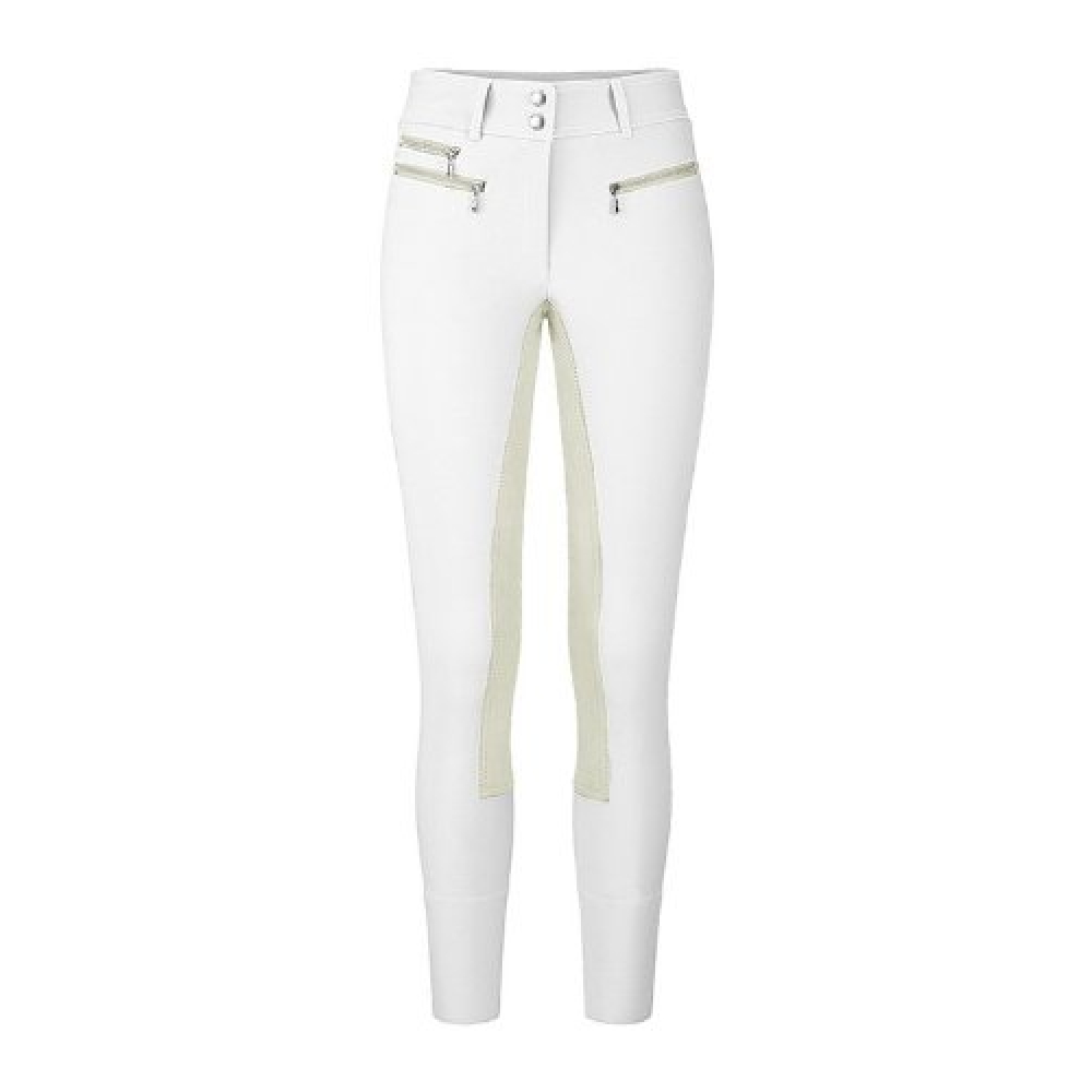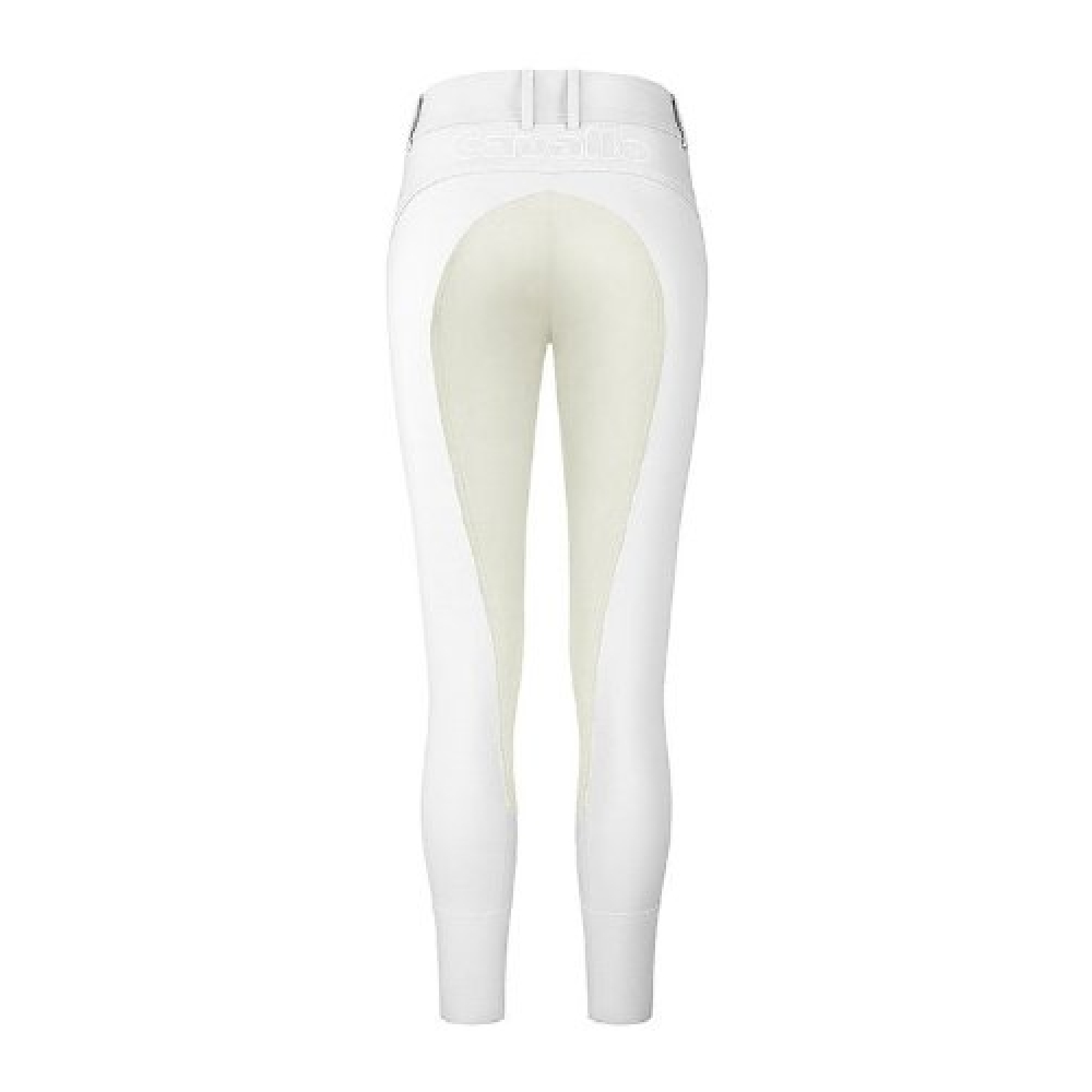Le Cavallo Candy Competition est LE pantalon d'équitation de compétition par excellence. Ce pantalon élégant pour femme est confectionné en softshell fin et possède un fond en cavasoft. Le tissu softshell offre un effet déperlant, empêchant ainsi la pluie de pénétrer directement dans la peau. Il possède trois poches zippées en métal sur le devant. Le texte Cavallo est brodé au dos, juste sous la ceinture. Le Candy est doté d'une fermeture élastique au bas de la jambe.