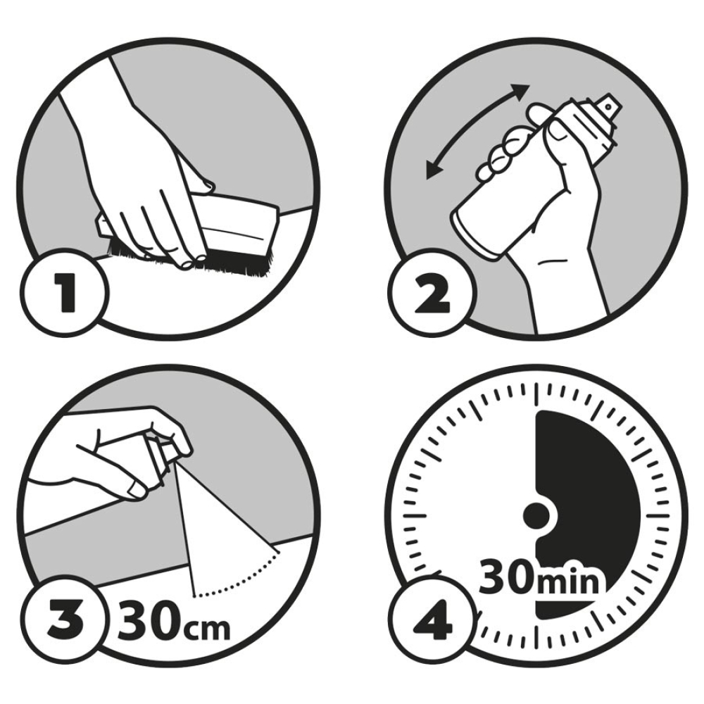 3. Vaporiser uniformément sur la surface à traiter à une distance d'environ 30 cm.