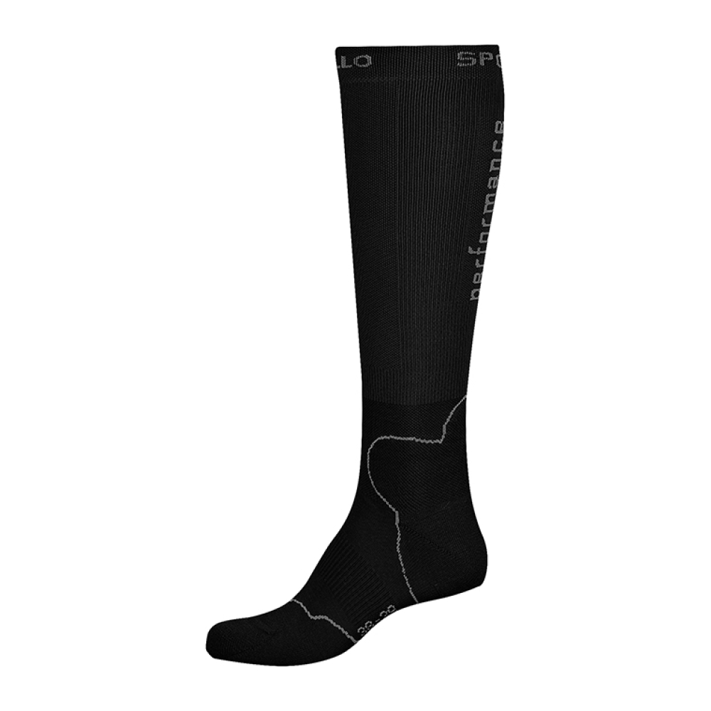 Deze modieuze e technische kousen van Cavallo zijn verstevigd bij de voet en enkel. De schacht/kuit van de kousen is van zeer elastisch materiaal wat compressie uitvoert op de kuit. Dit bevorderd de bloedcirculatie en gaat verdikking van de benen door vocht tegen.Op de kuit/schacht van deze technische kous staat Performanceen aan de bovenrand staat Cavallo Sports.