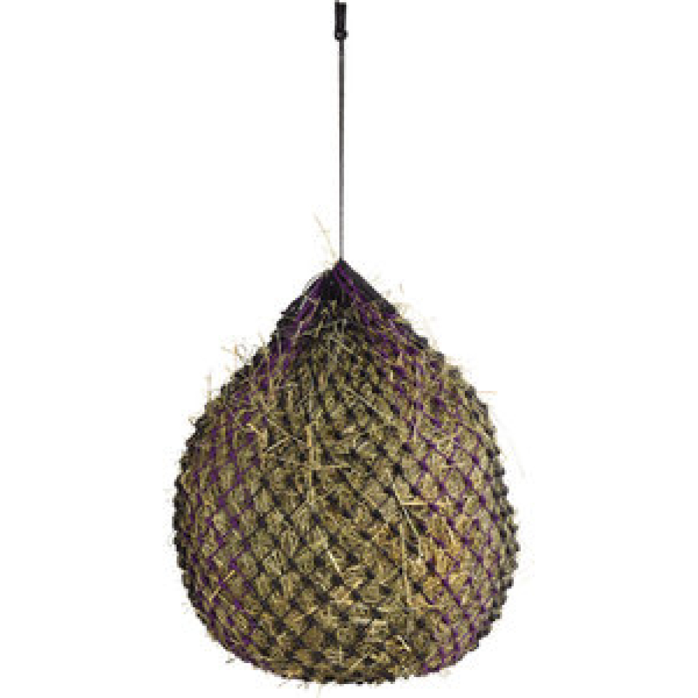 Tweekleurig polypropylene hooinet met ringen. Dit hooinet heeft een fijne maas waardoor paarden langzamer eten en minder hooi uit het net valt