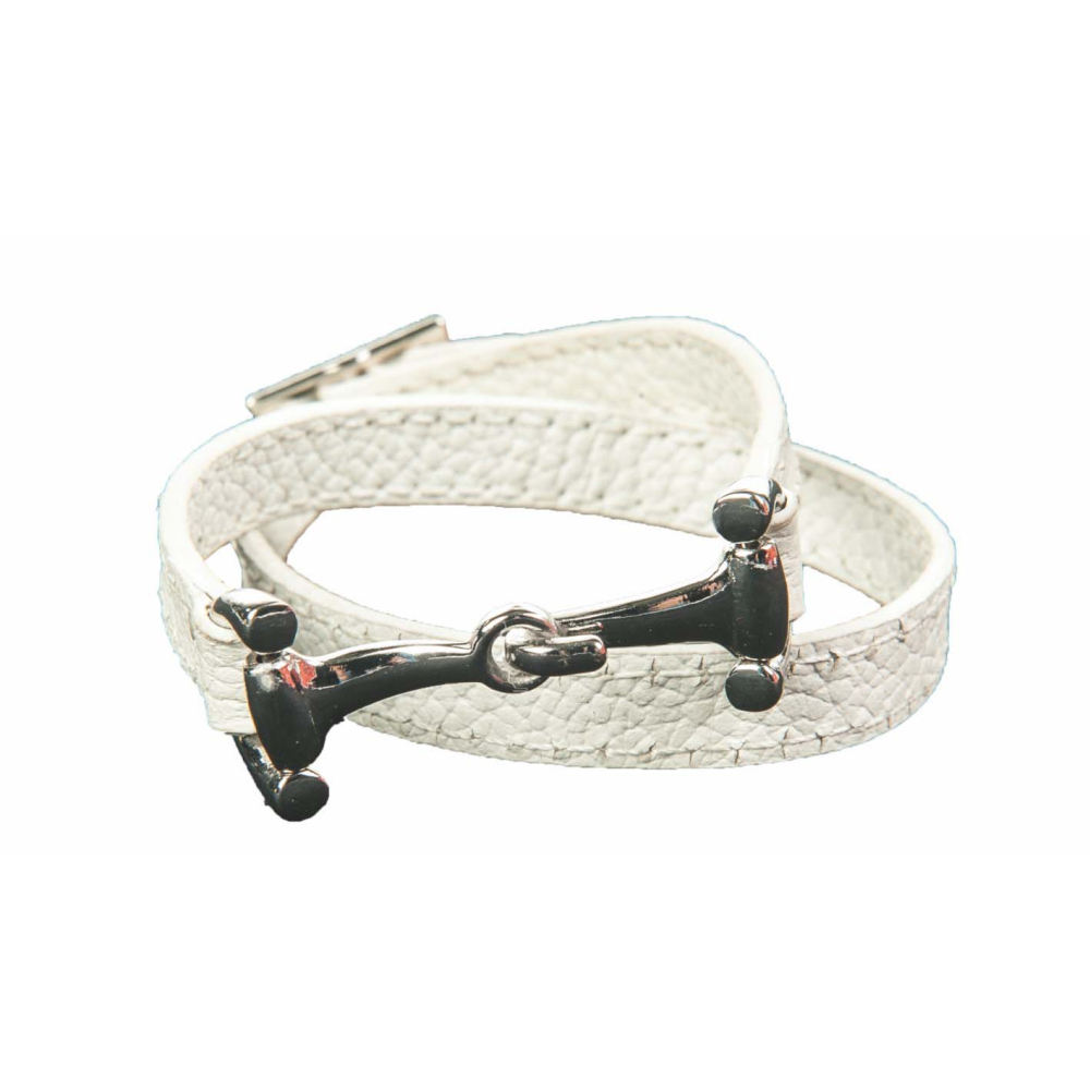 Gemaakt van kwaliteitsleer. Modieuze wikkel armband met "Bit", in de kleur wit. Volgens de productomschrijving is deze armband 23,5 cm Echter gemeten (ontwikkeld) :32-35 cm Geschikt tot omvang pols 17,5cm