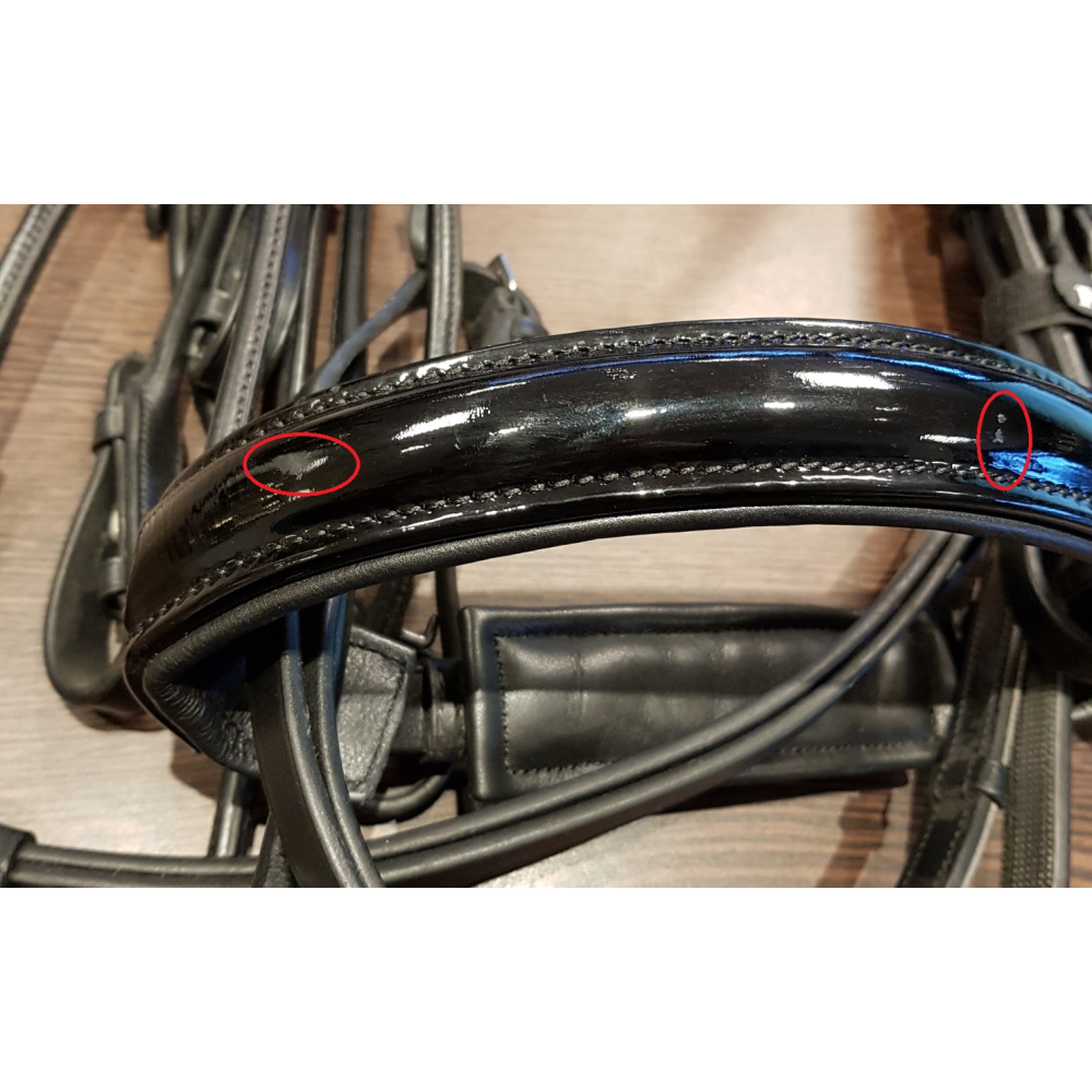 Let op! Dit hoofdstel heeft 2 kleine beschadigingen aan het lakleer van het hoofdstel. Zie foto!