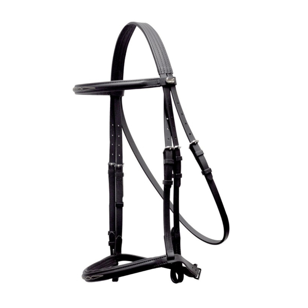 Tekna hoofdstel Hunter Fancy De hoofdstellen van Tekna hebben allemaal een polyester kern met daaromheen een polyurethaan laag. Hierdoor is het materiaal, sterk, slijtvast, maar soepel. Alle Tekna hoofdstellen zijn voorzien van zachte padding onder neusriem en frondeel en zijn afgewerkt met elegante roestvrijstalen fournituren. Door het gebruik van het Quik Clean materiaal zijn de Tekna hoofdstellen eenvoudig te reinigen met water Tekna hoofdstellen zijn zeer geschikt voor paarden die wat gevoeliger zijn, omdat ze makkelijk te reinigen en hypoallergeen zijn en niet stijf worden onder invloed van zweet en vuil Het model Hunter heeft sierstiksels op het frondeel en op de neusriem. De bakstukken zijn voorzien van een blinde sluiting. Exclusief teugel