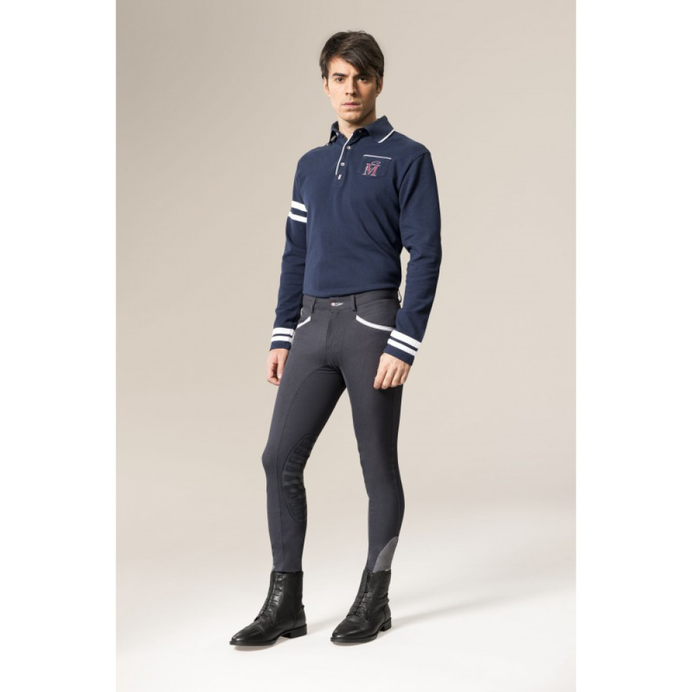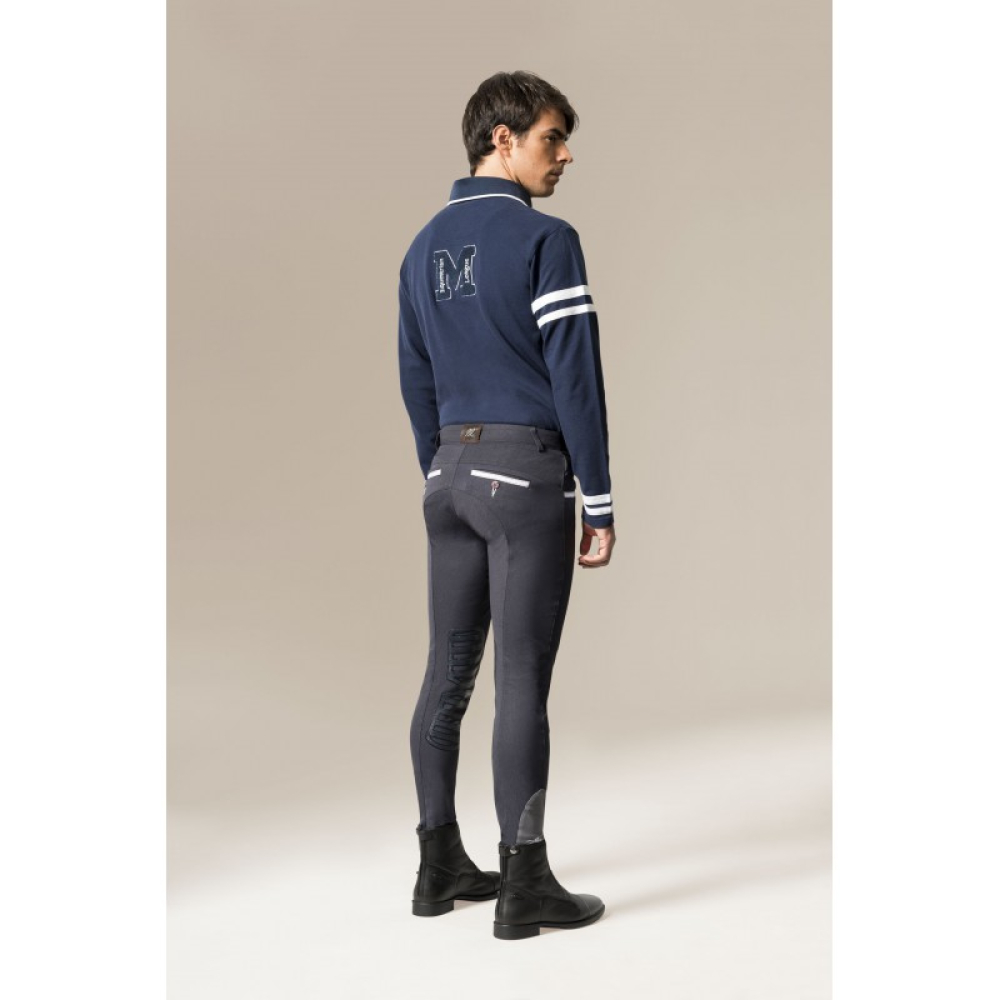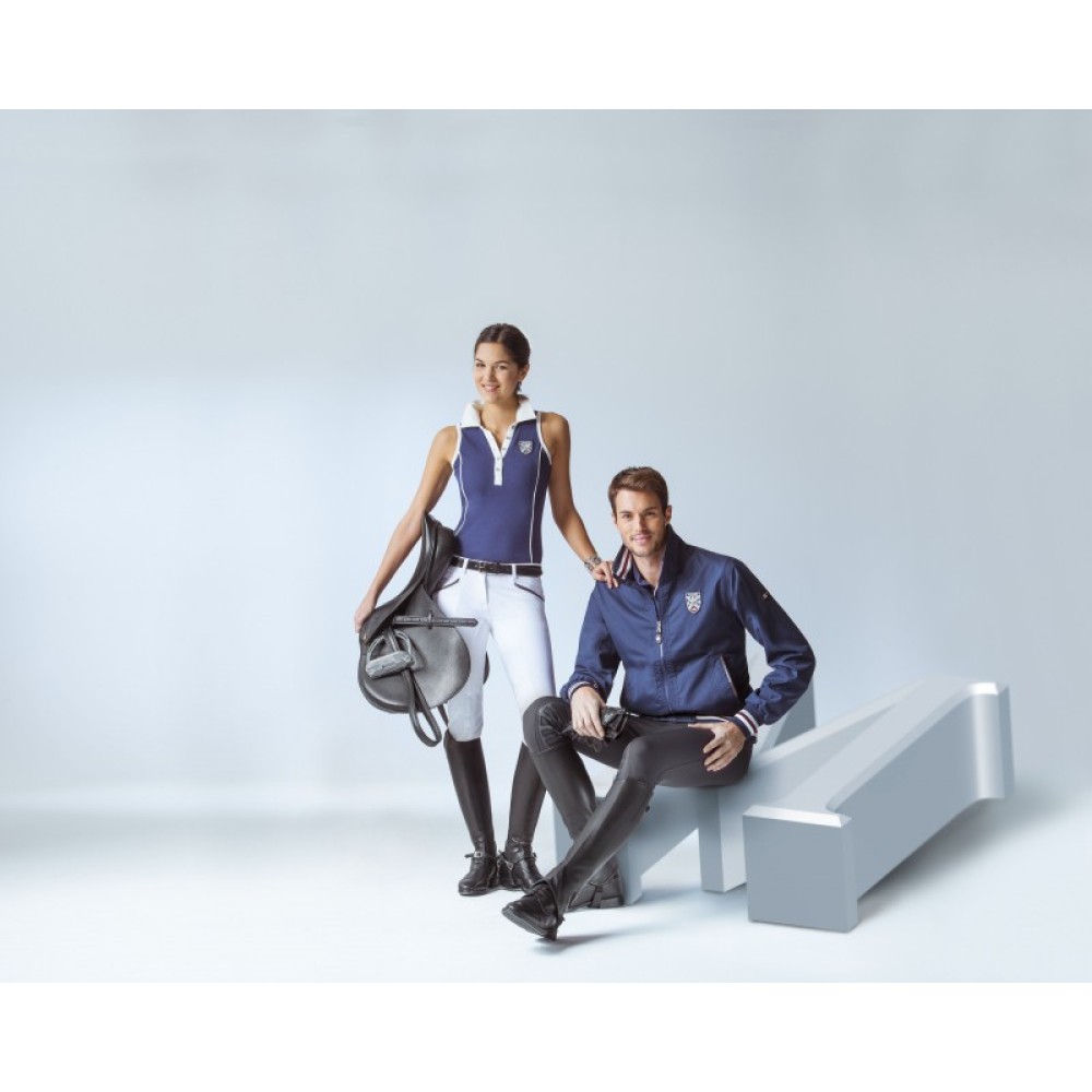 De Equestrian League EQUIT’M: al de Equi-Thème’s zeer onderscheidende know-how, high tech materialen en functionele designs voor opvallende en hippe ruitersportbenodigheden, zullen uw persoonlijkheid bevestigen en die van uw paard. Draag ze 7 dagen in de week en 12 maanden per jaar! Deze uiterst comfortabele en sterke rijbroeken zullen alle intensieve ruiters verleiden. Grote comfort en anatomisch model gecombineerd met een high-tech soepele stretch nylon stof voor comfort bij iedere beweging; zeer absorberend en snel drogend voor comfort in ieder weer. Euro zit en anti-slip siliconen kniestukken. Stretch onderbeen gemaakt van gebreid stretch nylon (96% nylon en 4% elasthan) voor een perfecte houvast. Riemlussen en knoopsluiting. Steekzakken aan de voorkant en valse zakken met drukkers aan de achterkant versierd met contrasterend koord. Samenstelling: 61% nylon, 31% micro-nylon en 8% elasthan Lycra®. Machine wasbaar op 30°C. De genoemde maten zijn franse maten en vallen klein. U moet ongeveer +6 doen voor de Nederlandse heren maat.