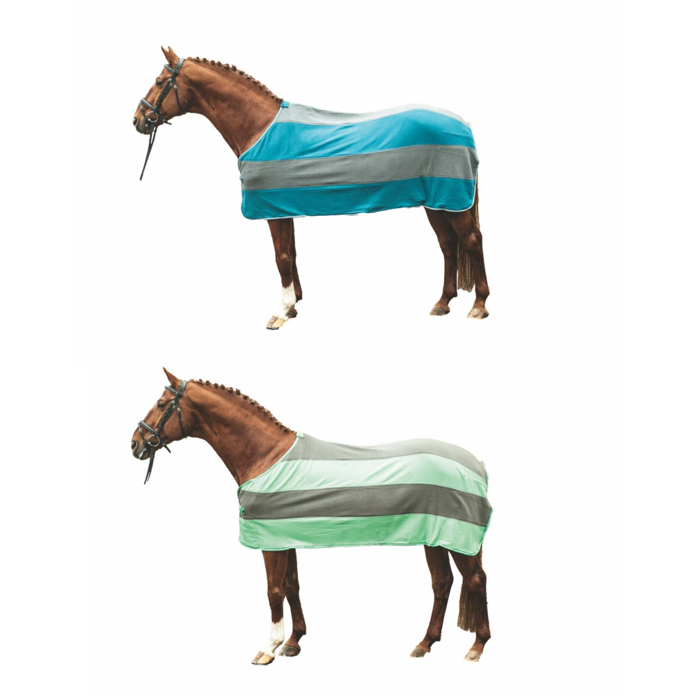 productomschrijving: - ademend - vocht wordt snel opgenomen - metalen sluitingen - schoftbescherming - zijkanten extra lang - dubbelzijdig fleece - 100% polyester - wasmachinebestendig tot 30 graden - mag in de droogtrommel Kleuren Petrol/Grijs (Blauw) Appeltjesgroen/Grijs (Groen) Let op! Door de belichting is de kleur op de webshop iets lichter