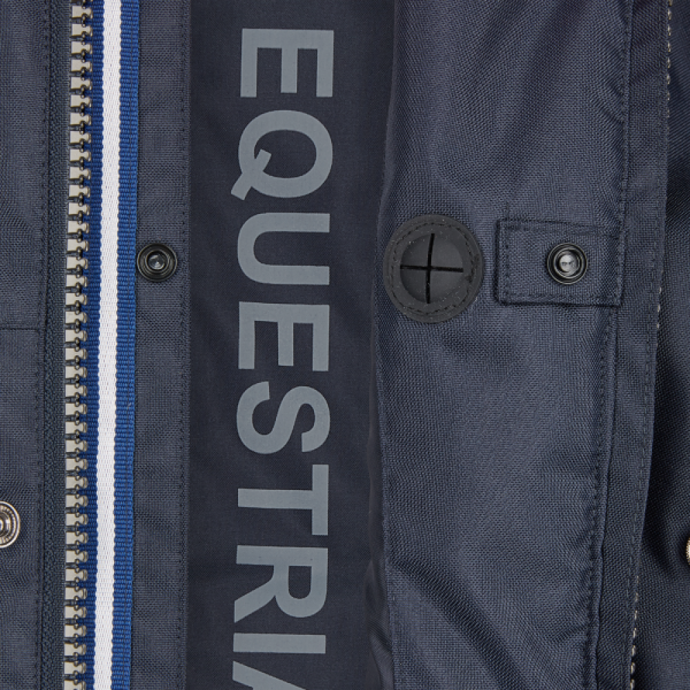 - regelbare en afneembare capuchon met vormbaar scherm, capuchon kan tijdens het paardrijden op de rug worden vastgemaakt