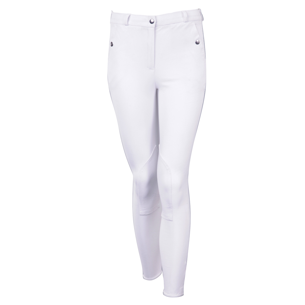 Strak model rijbroek met twee steekzakken met drukknoopsluiting op de voorkant. De broek is voorzien van stoffen kniestukken (SKP), een rondgenaaid zitvlak en een klittenbandsluiting aan het uiteinde van de broekspijp. Vervaardigd van 58% katoen/ 34% nylon/ 8% Lycra, geweven kwaliteit.