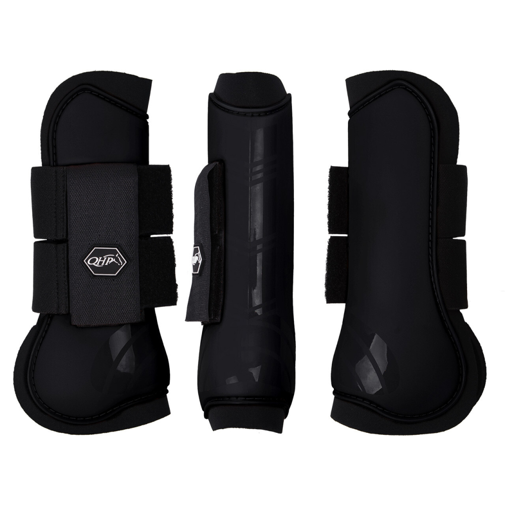 Set van twee peesbeschermers met harde plastic schaal en neopreen voering. Af te sluiten met klittenband. Te gebruiken om het paardenbeen te beschermen tegen aantikken. Verkrijgbaar in vele kleuren.